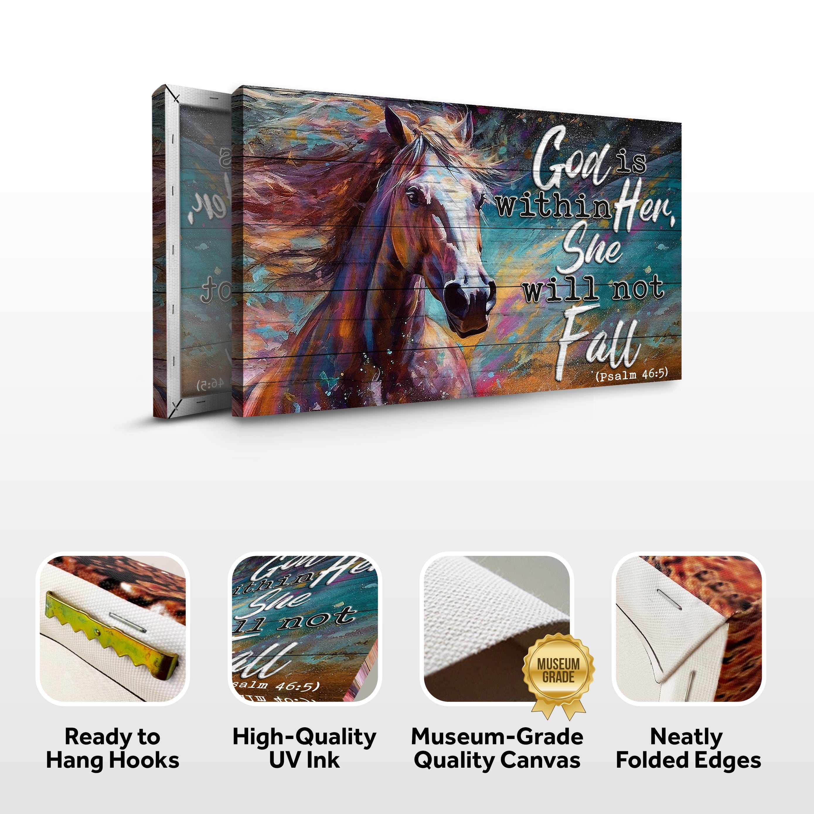 God Is Within Her She Will Not Fall Psalm 46:5 Faith Sign V ‐ 36x24 inch Extra Large Premium Gallery Wrapped
