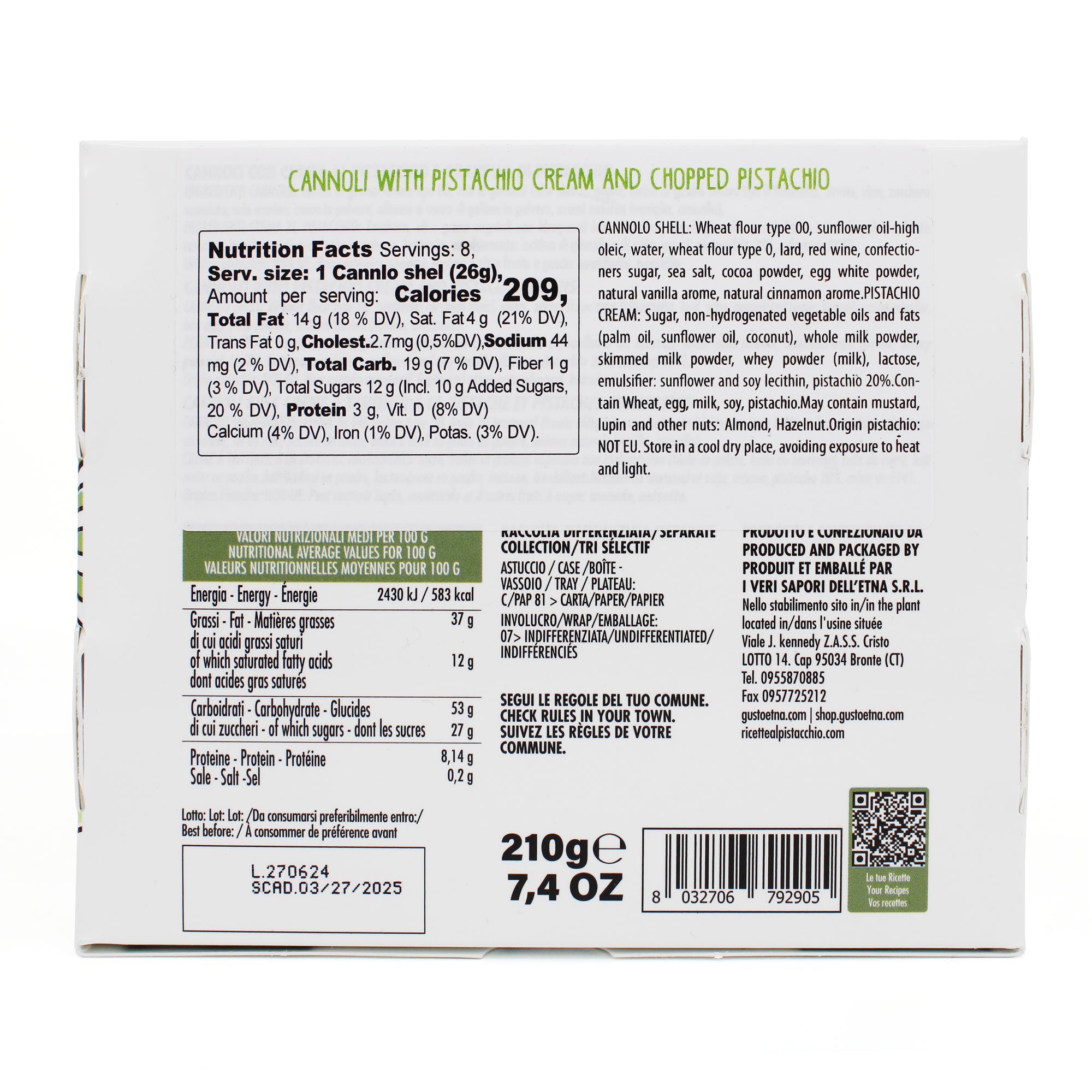 Gusto Etna, Sicilian 8 pcs Cannoli filled with Pistachio Cream Gift Box
