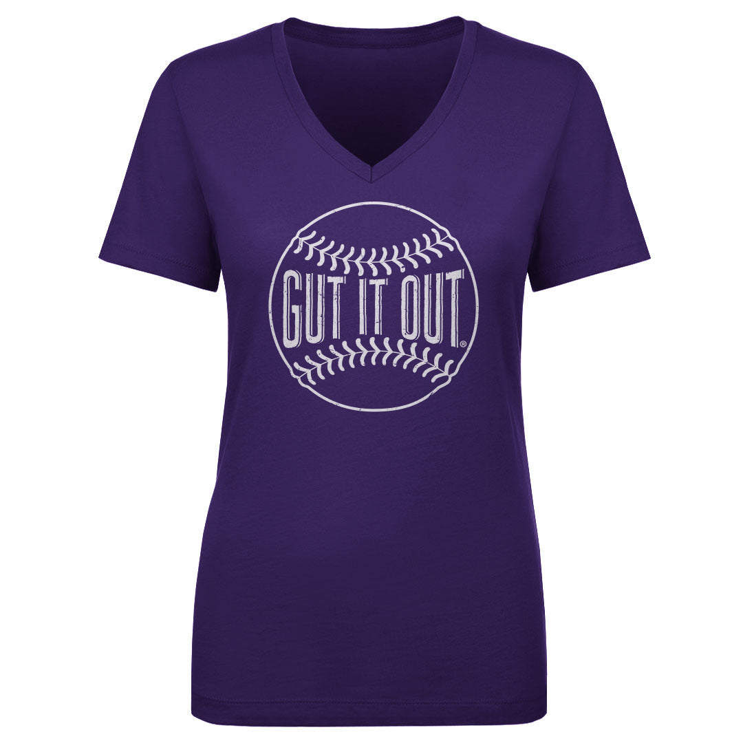 Gut It Out Foundation Baseball WHT ‐ Women's V-Neck T-Shirt / Purple / L