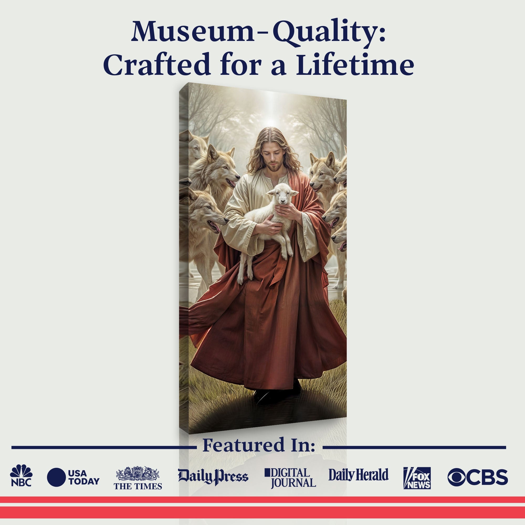 Jesus Protects The Lamb From Wolves Faith Wall Art VI ‐ 48x24 inch Large Premium Gallery Wrapped