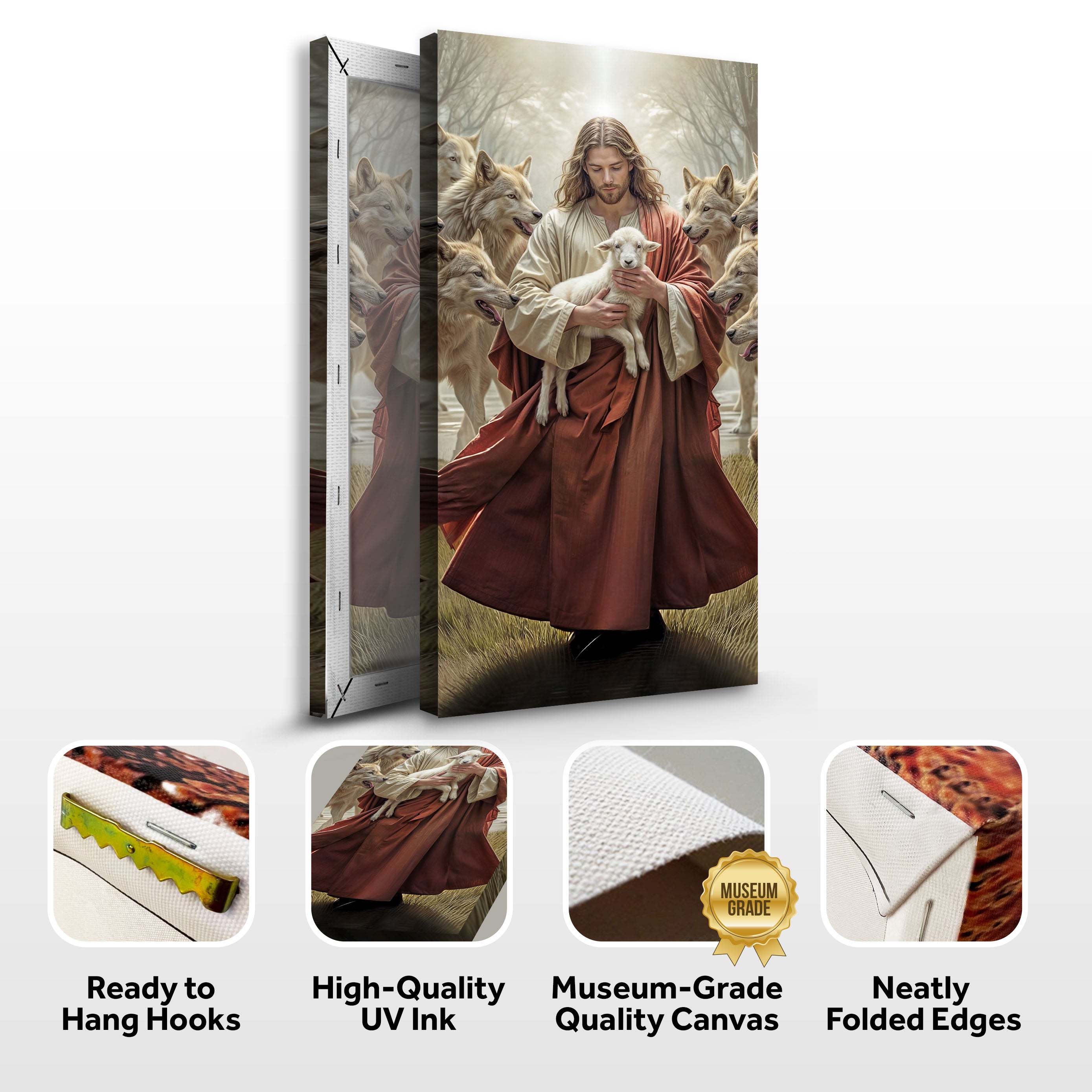 Jesus Protects The Lamb From Wolves Faith Wall Art VI