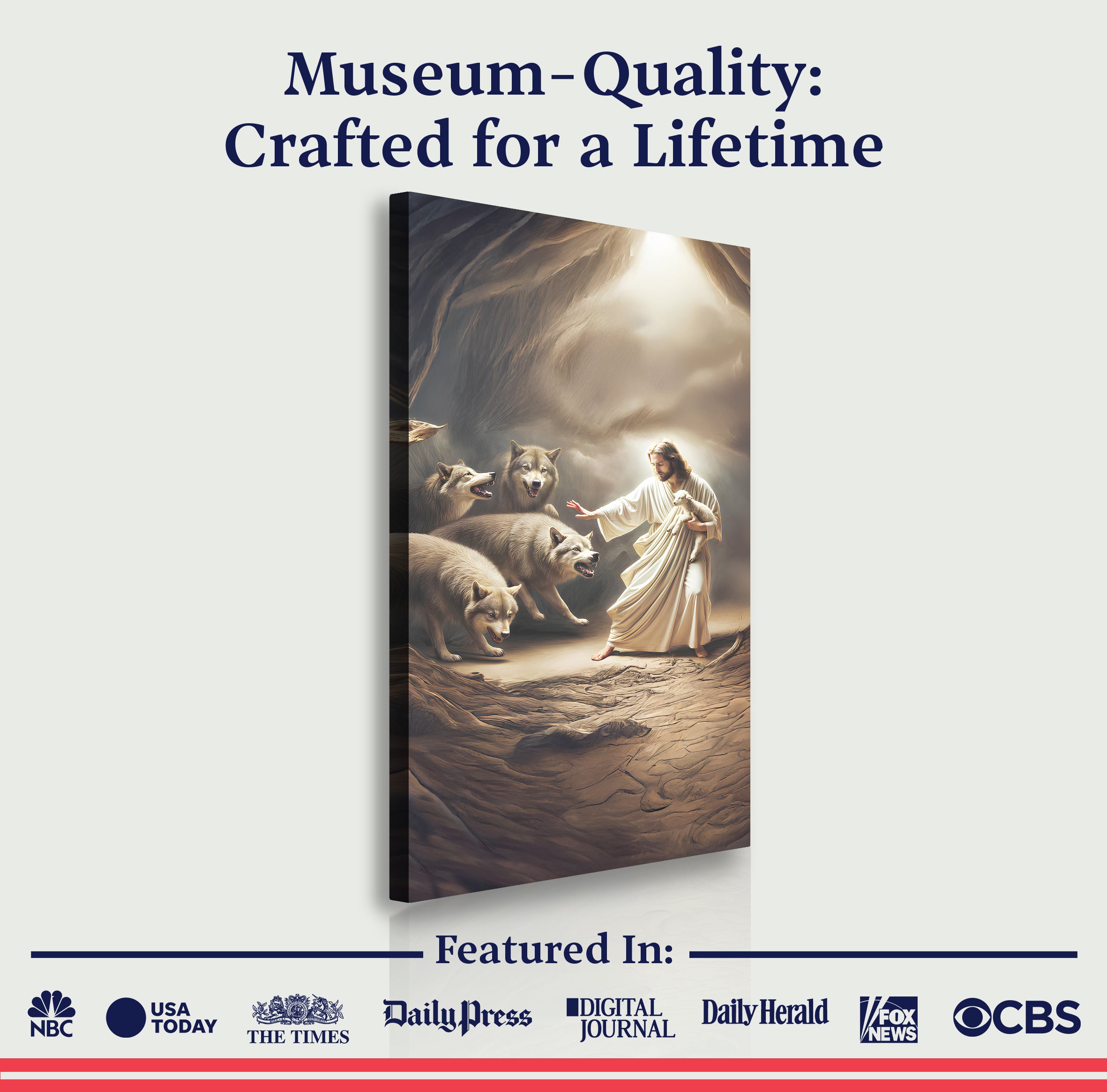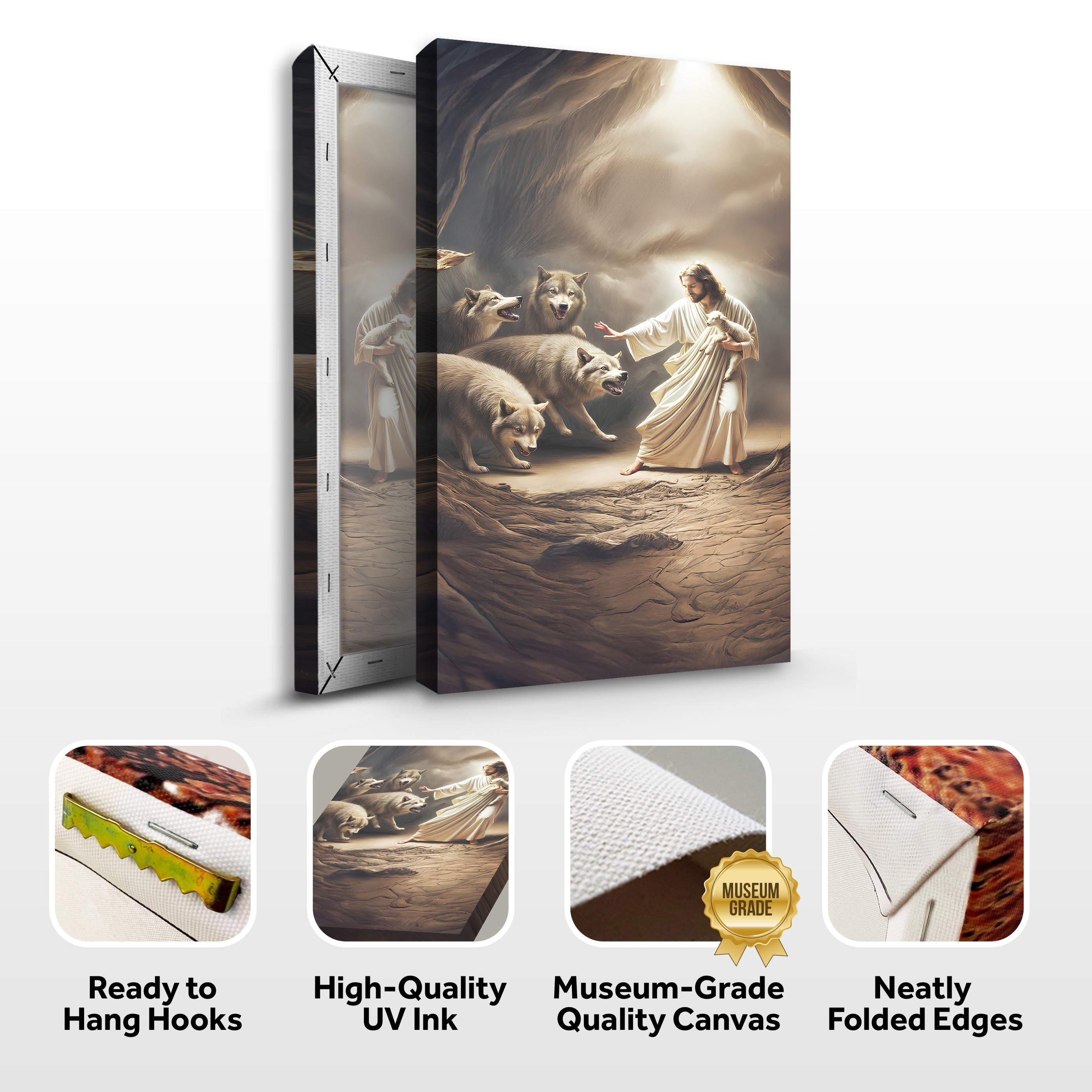 Jesus Protects The Lamb From Wolves Faith Wall Art VII