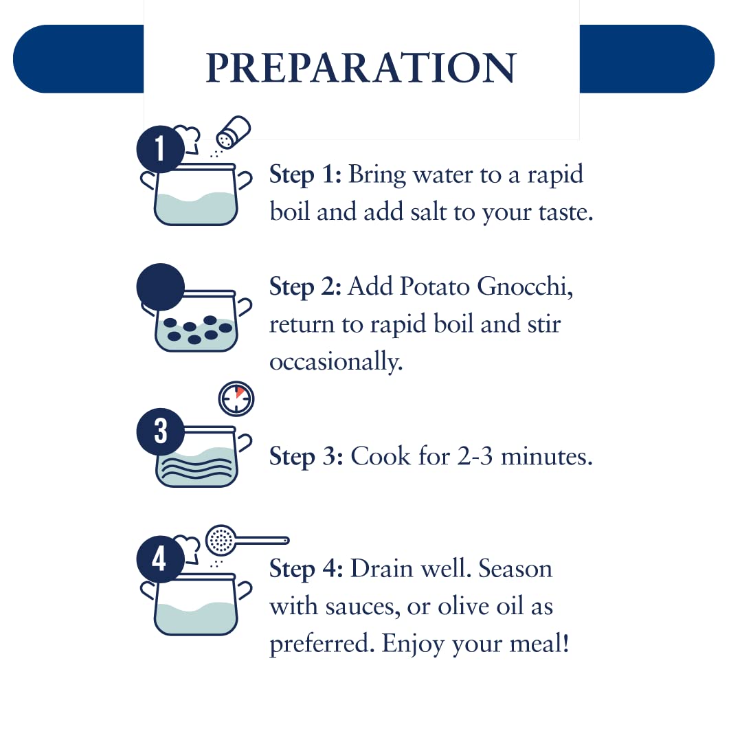 - Crafted in Italy using traditional gnocchi-making methods for a chewy, plump bite.