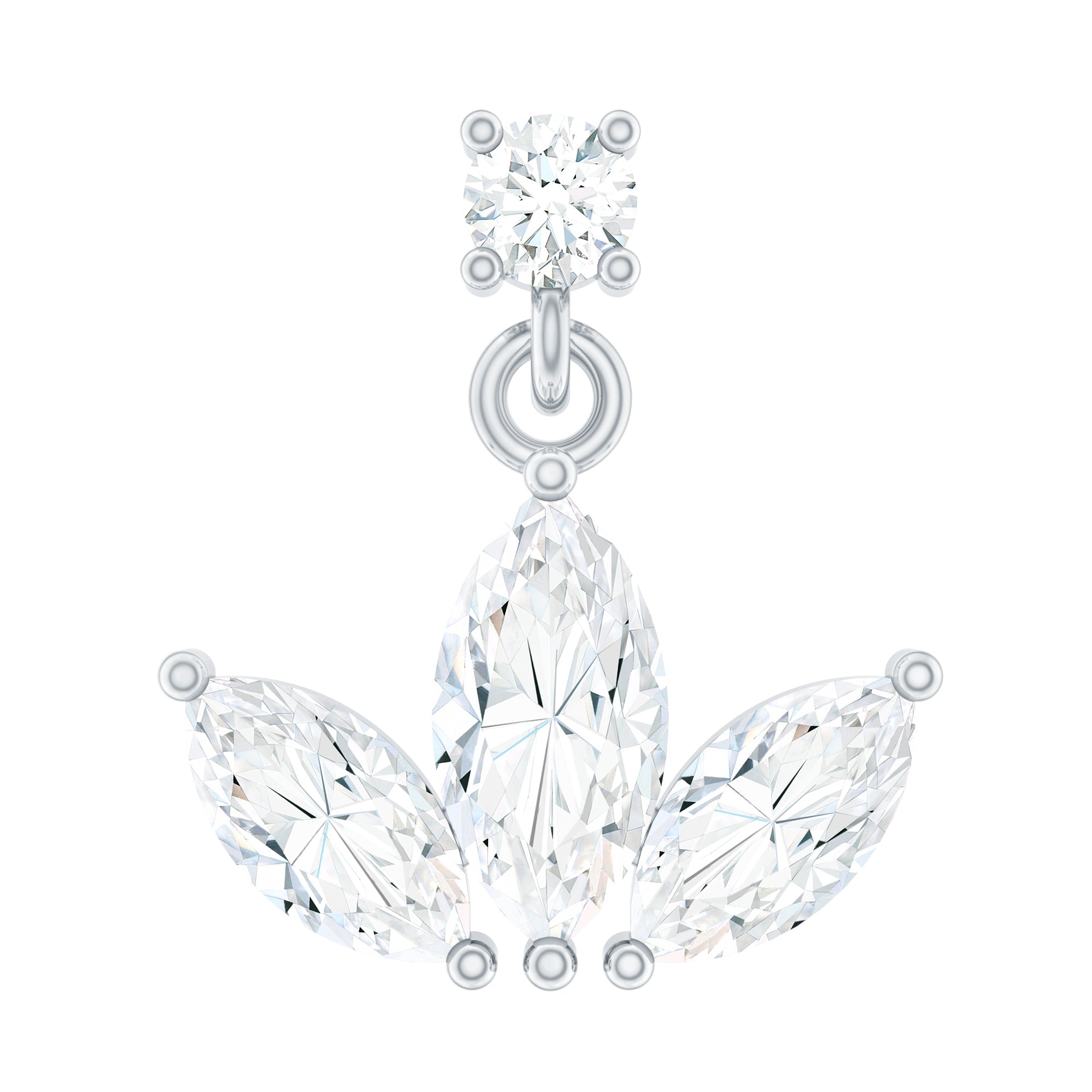 Marquise Diamond Lotus Cartilage Drop Earring ‐ Lab - ( EF-VS ) / 14K White Gold / Flat Back 5.0 MM