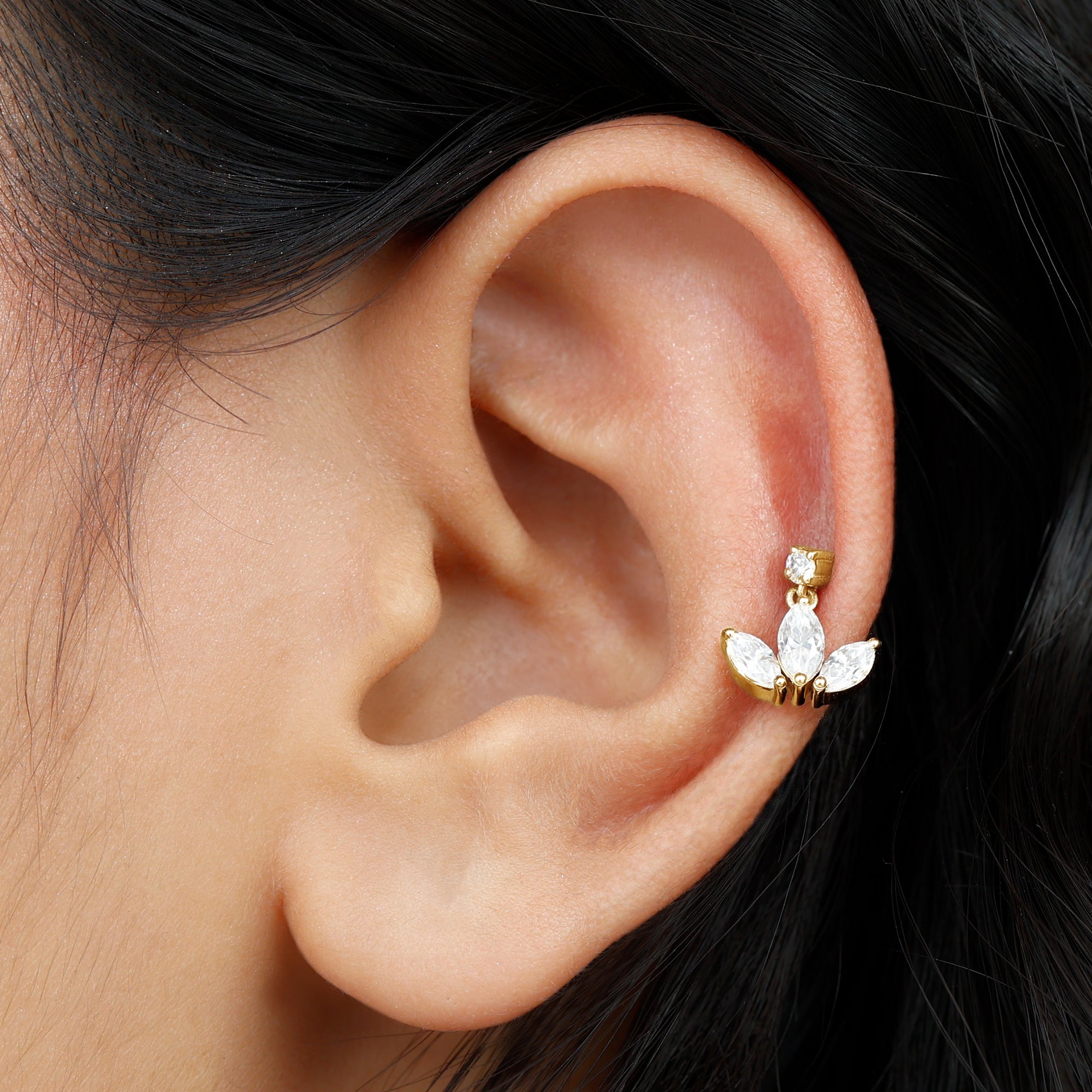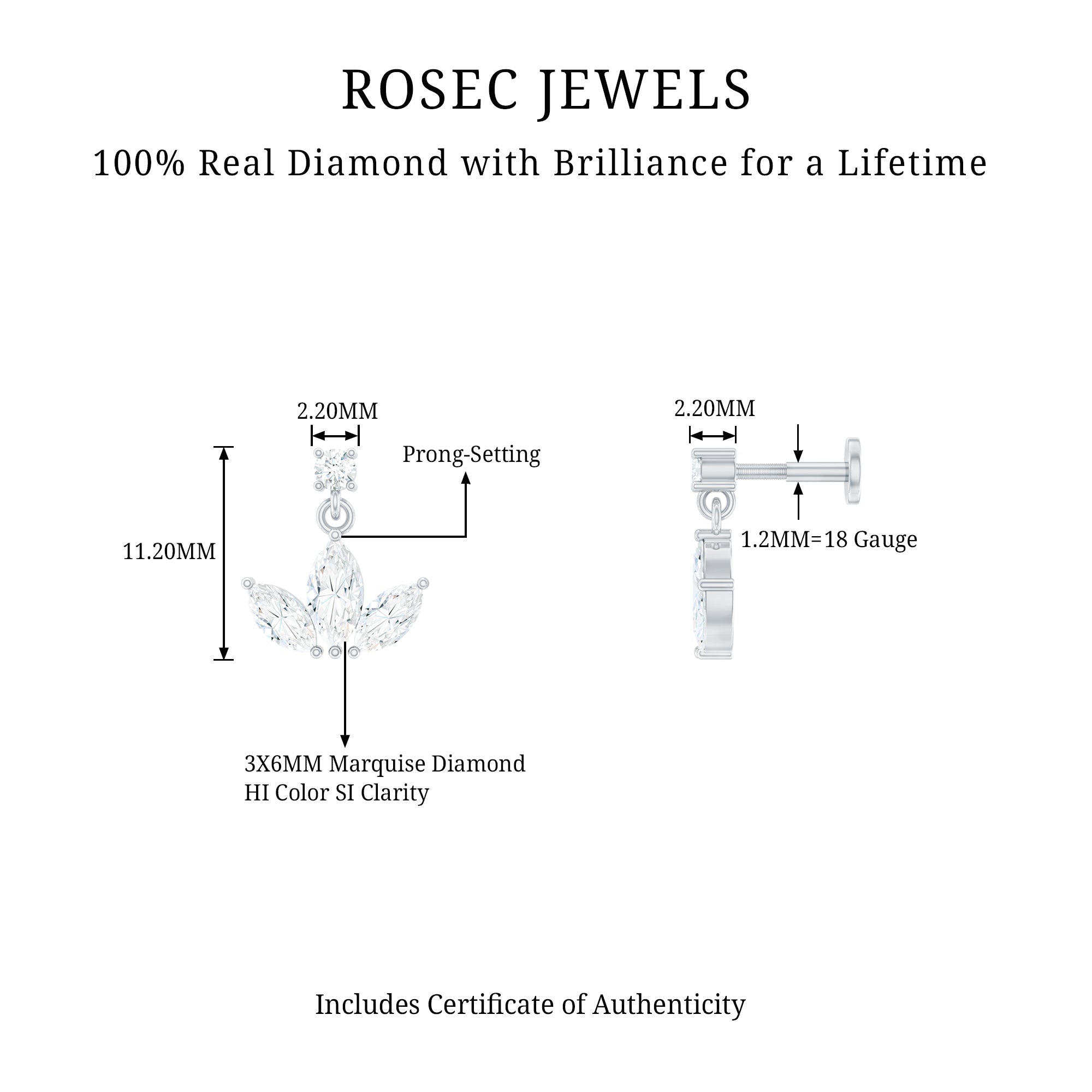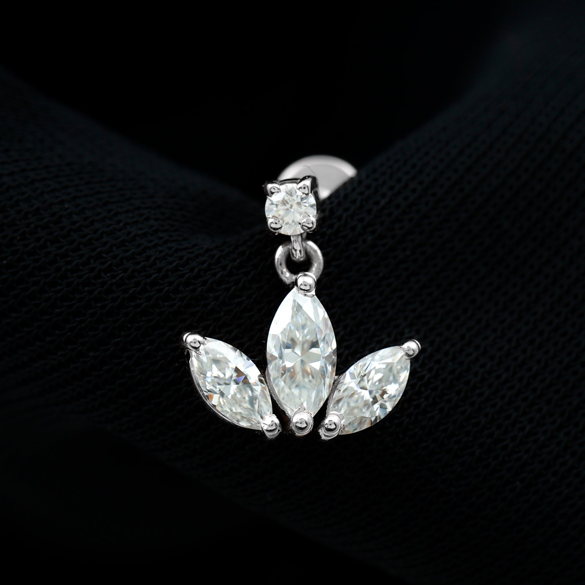 Marquise Diamond Lotus Cartilage Drop Earring ‐ Natural - ( HI-SI ) / 14K White Gold / Flat Back 4.5 MM