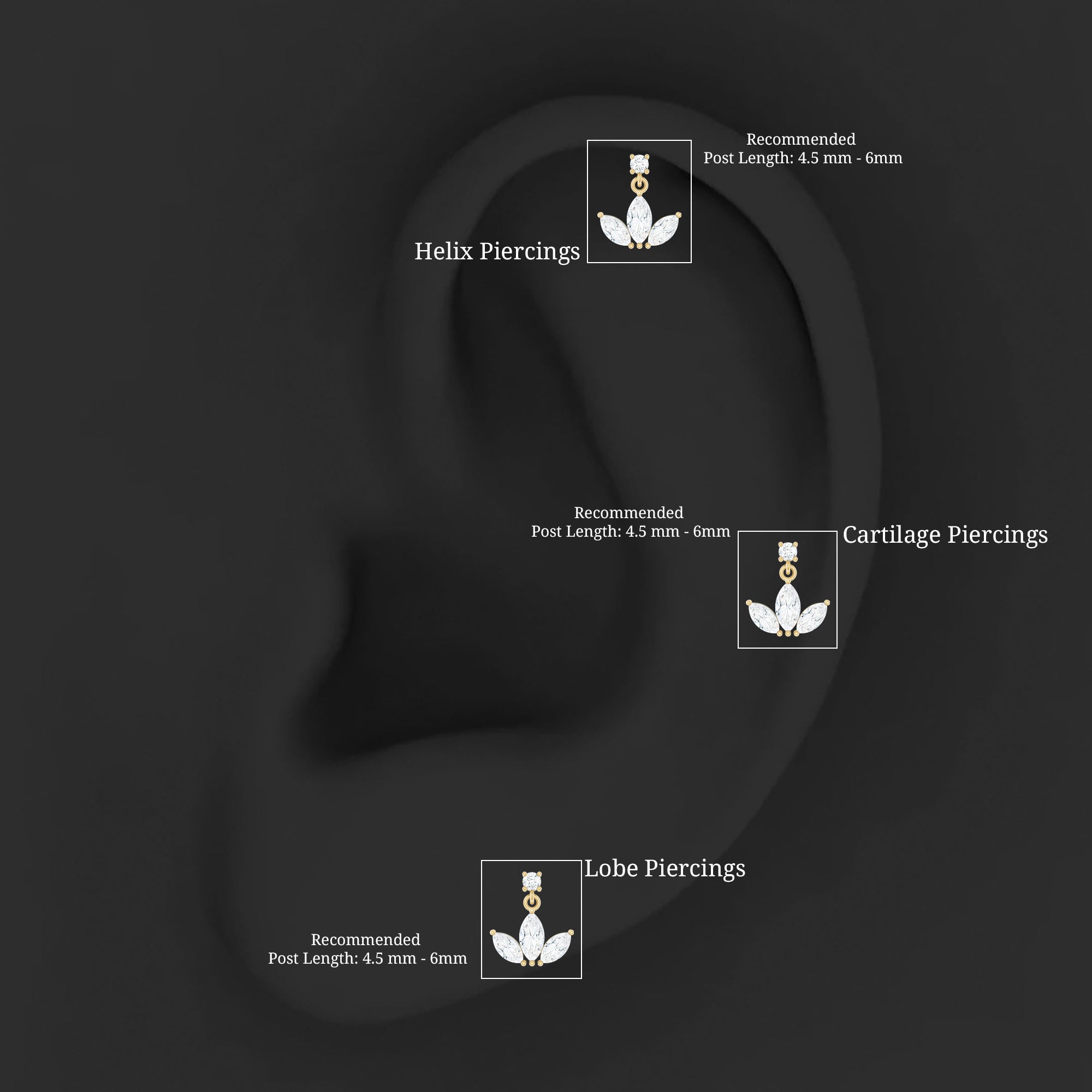 Marquise Diamond Lotus Cartilage Drop Earring ‐ Lab - ( EF-VS ) / 18K White Gold / Flat Back 4.5 MM