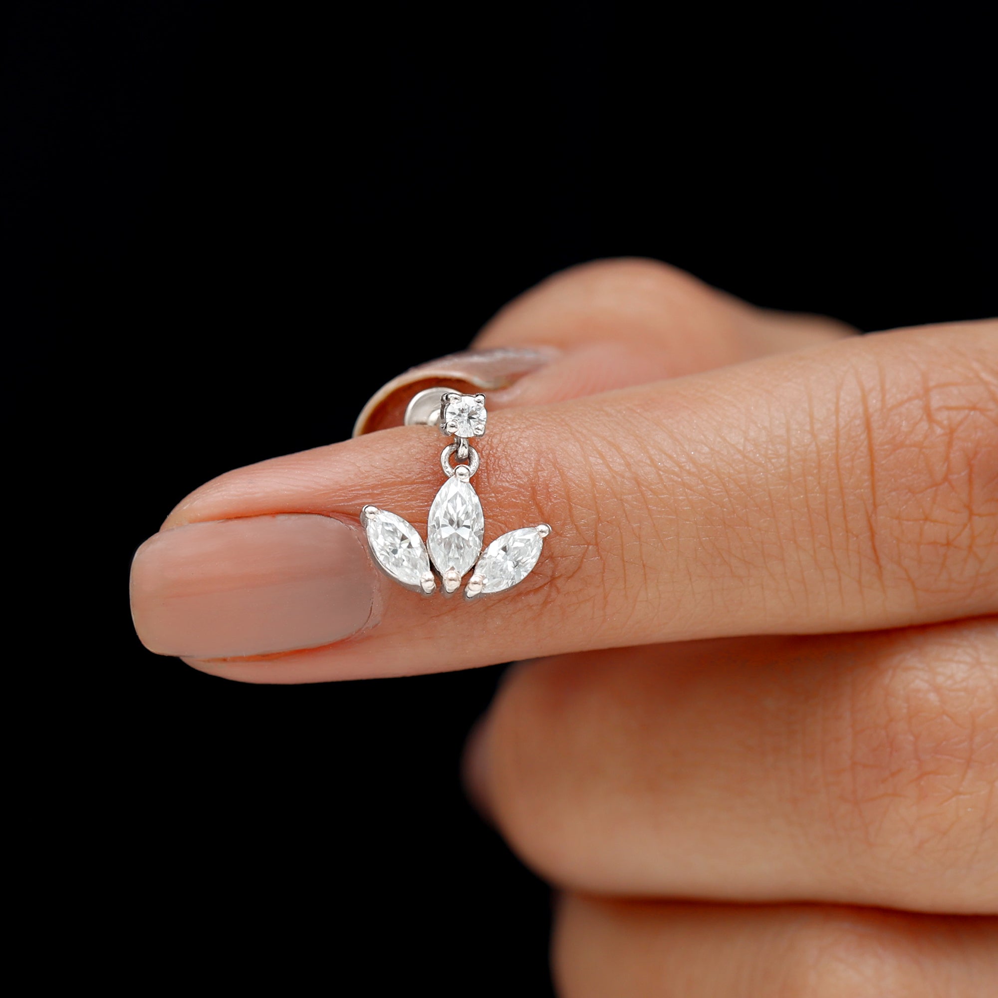 Marquise Diamond Lotus Cartilage Drop Earring ‐ Natural - ( HI-SI ) / 10K White Gold / Flat Back 4.5 MM