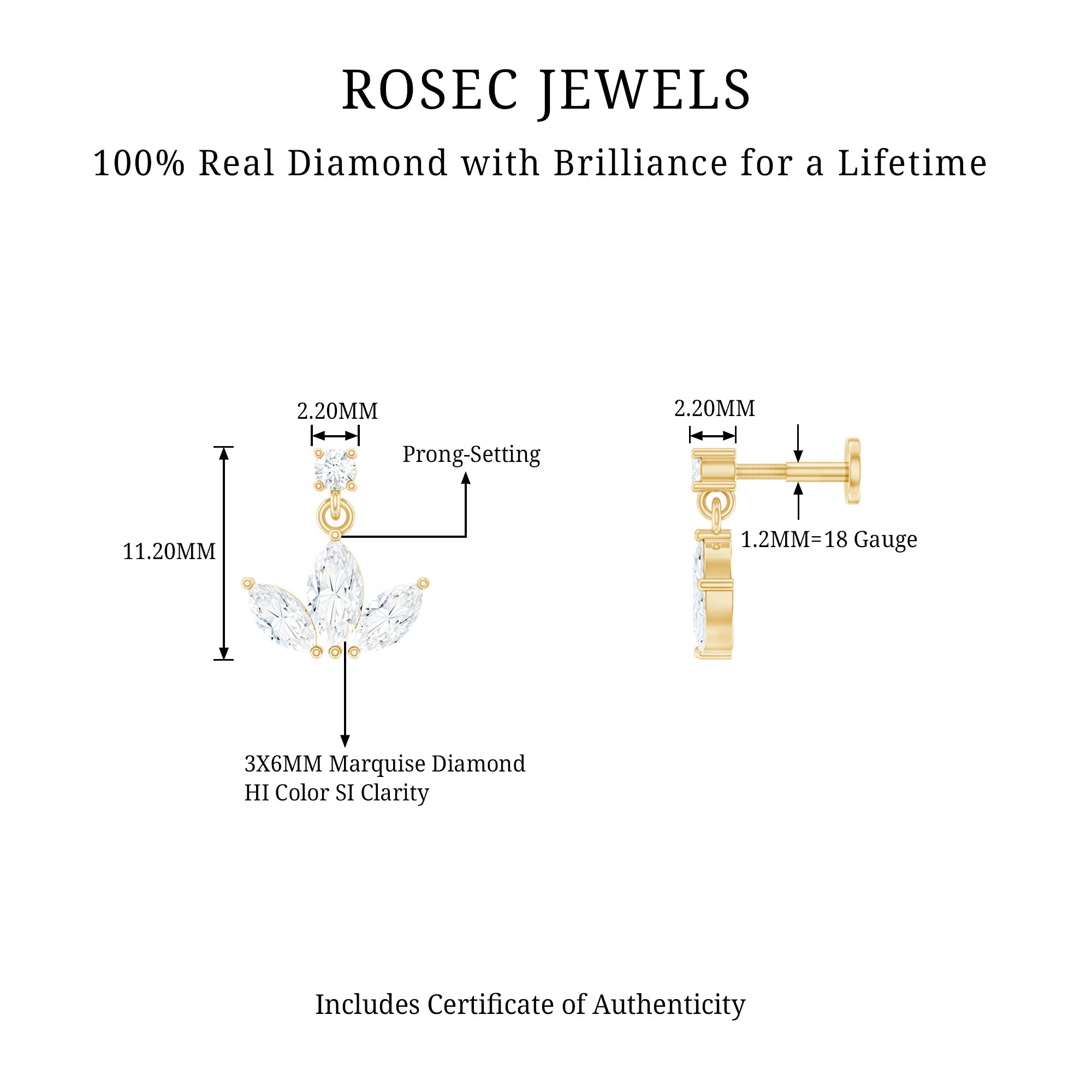 Marquise Diamond Lotus Cartilage Drop Earring ‐ Natural - ( HI-SI ) / 14K Yellow Gold / Flat Back 6.0 MM