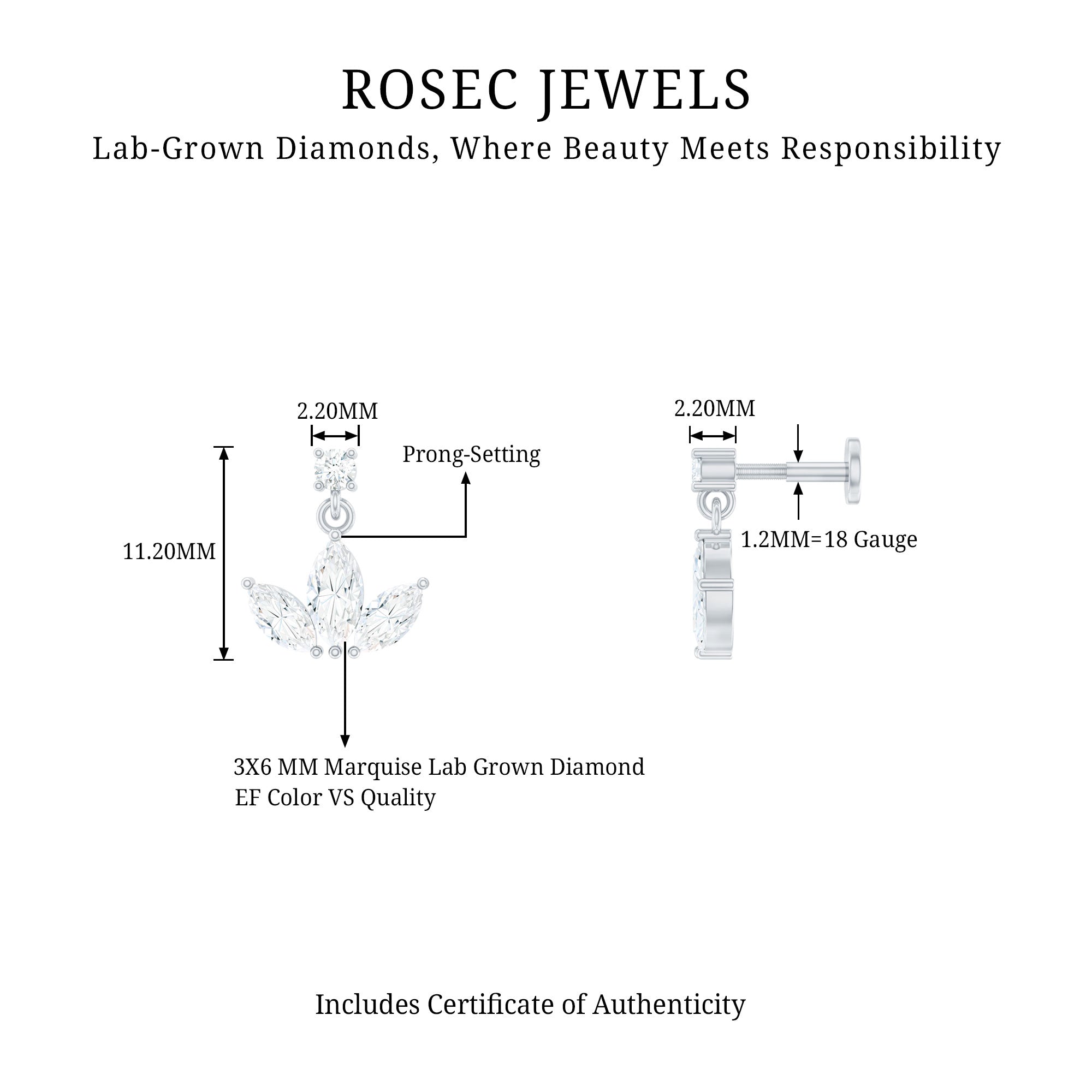 Marquise Diamond Lotus Cartilage Drop Earring ‐ Lab - ( EF-VS ) / 14K White Gold / Flat Back 4.5 MM