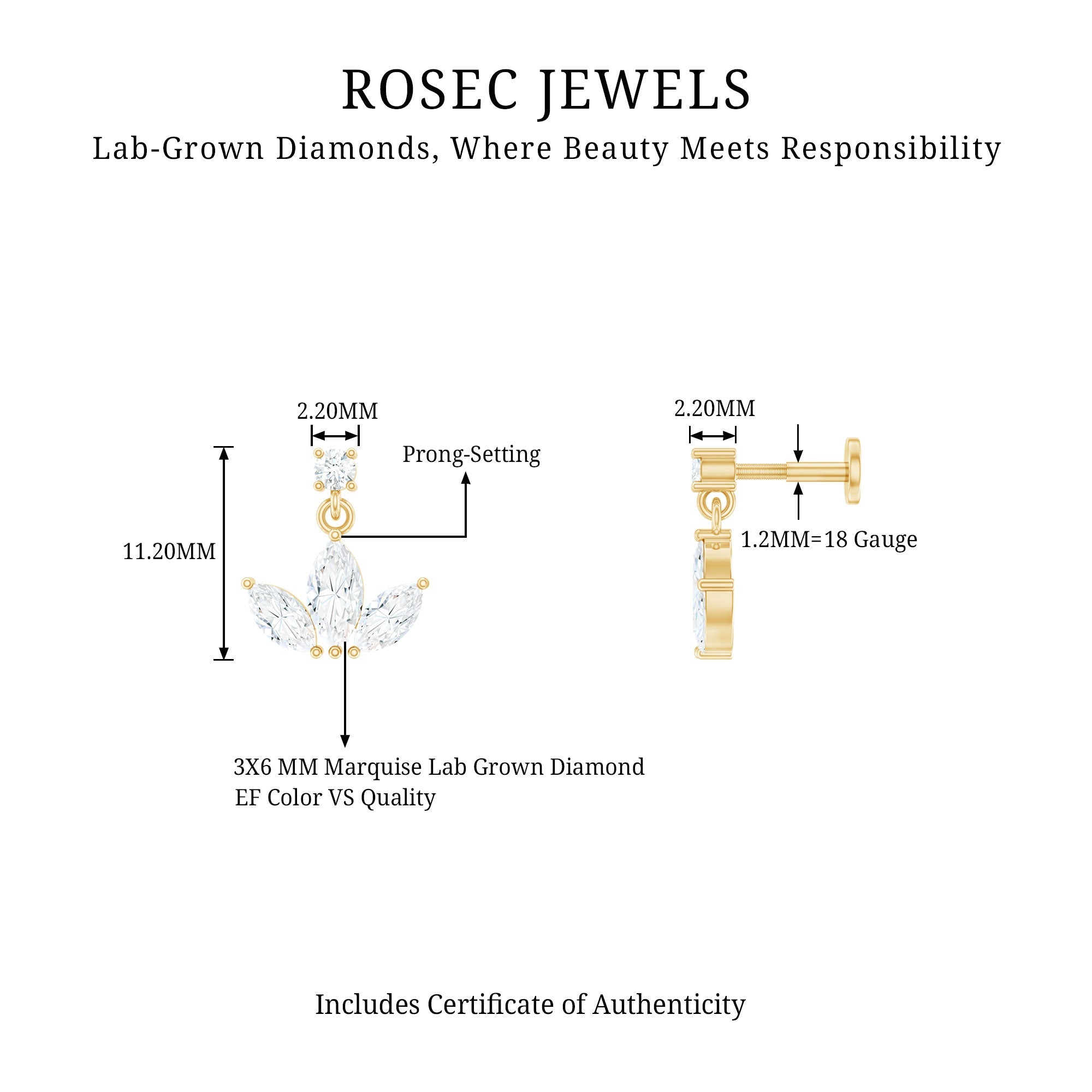 Marquise Diamond Lotus Cartilage Drop Earring ‐ Lab - ( EF-VS ) / 14K Yellow Gold / Flat Back 5.0 MM