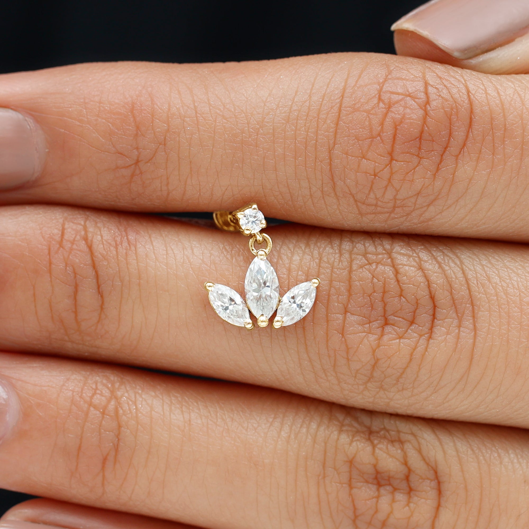 Marquise Diamond Lotus Cartilage Drop Earring ‐ Natural - ( HI-SI ) / 10K Yellow Gold / Flat Back 5.5 MM