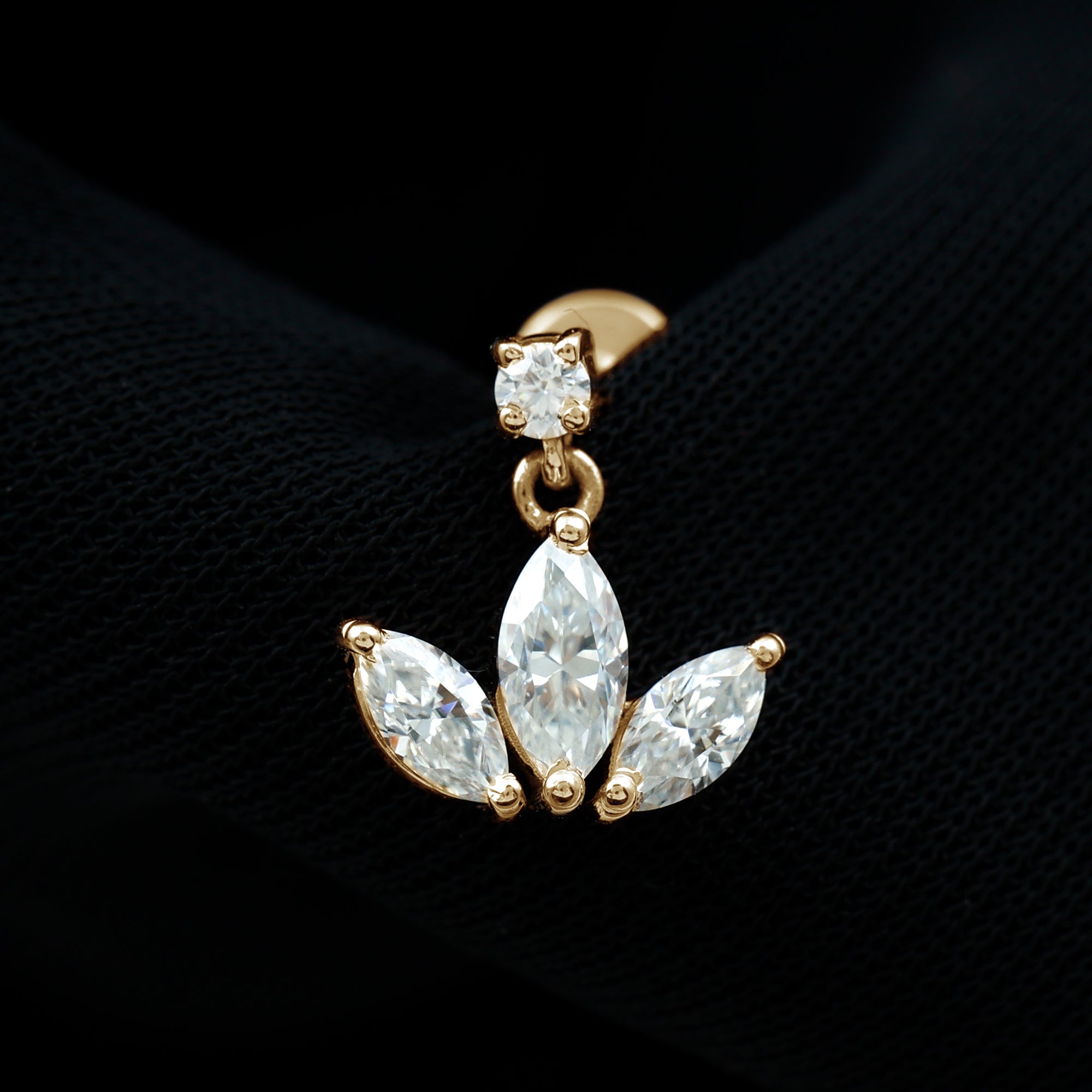 Marquise Diamond Lotus Cartilage Drop Earring ‐ Lab - ( EF-VS ) / 14K Yellow Gold / Flat Back 4.5 MM