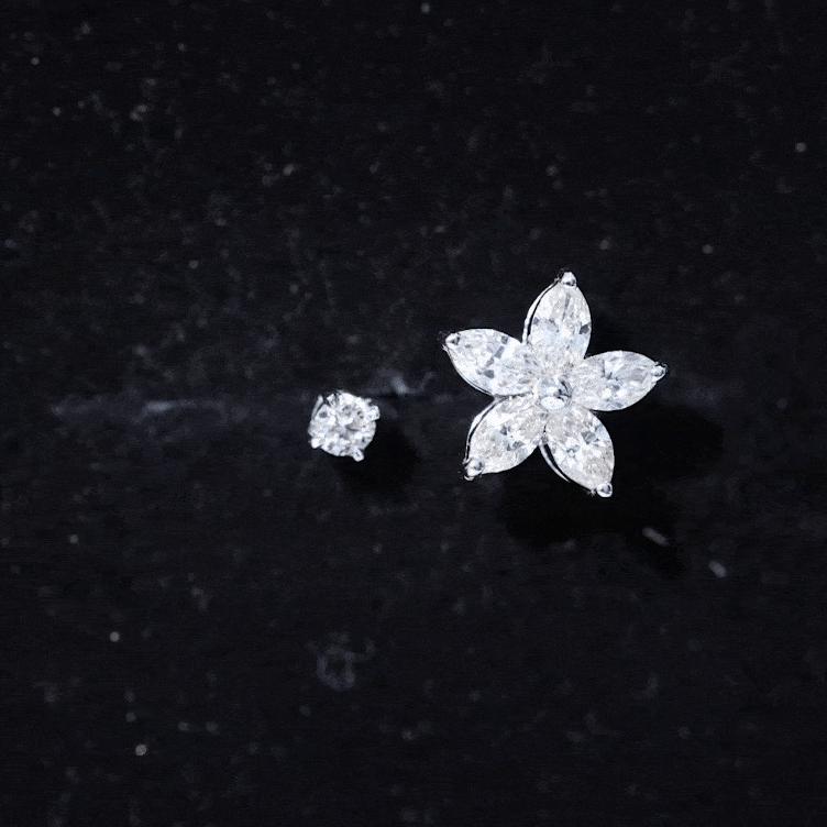 Marquise Moissanite Flower Cartilage Earring Set ‐ D-VS1 / 18K White Gold / Select Option