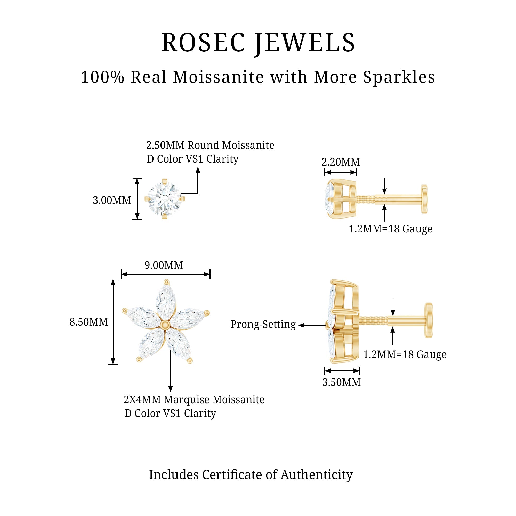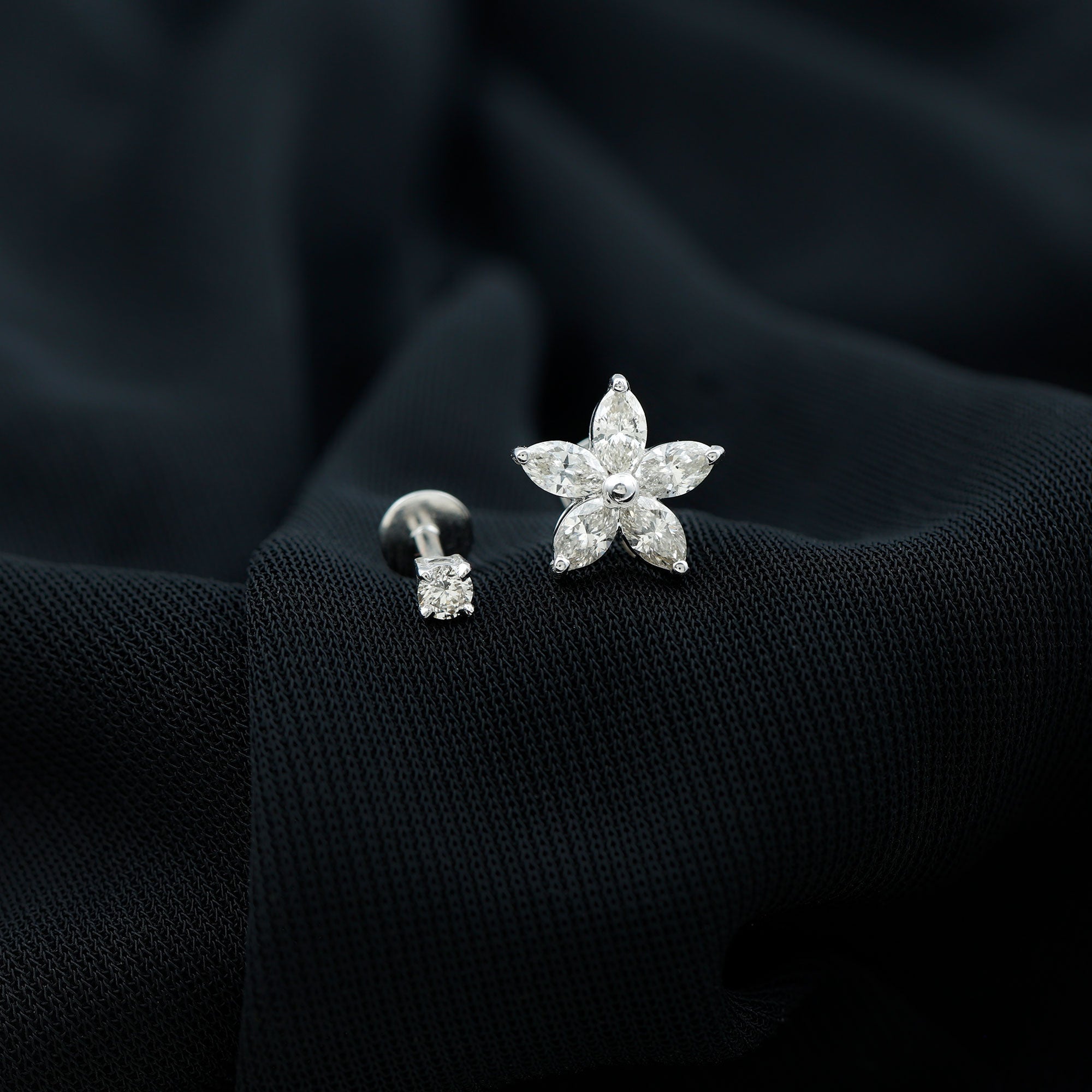 Marquise Moissanite Flower Cartilage Earring Set ‐ D-VS1 / 18K White Gold / Flat Back 4.5 MM