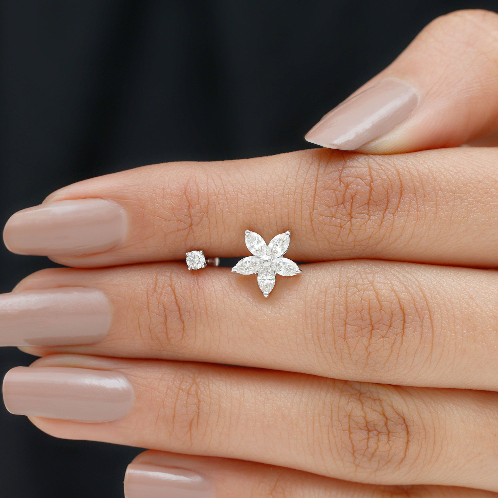 Marquise Moissanite Flower Cartilage Earring Set ‐ D-VS1 / 18K White Gold / Flat Back 7.5 MM