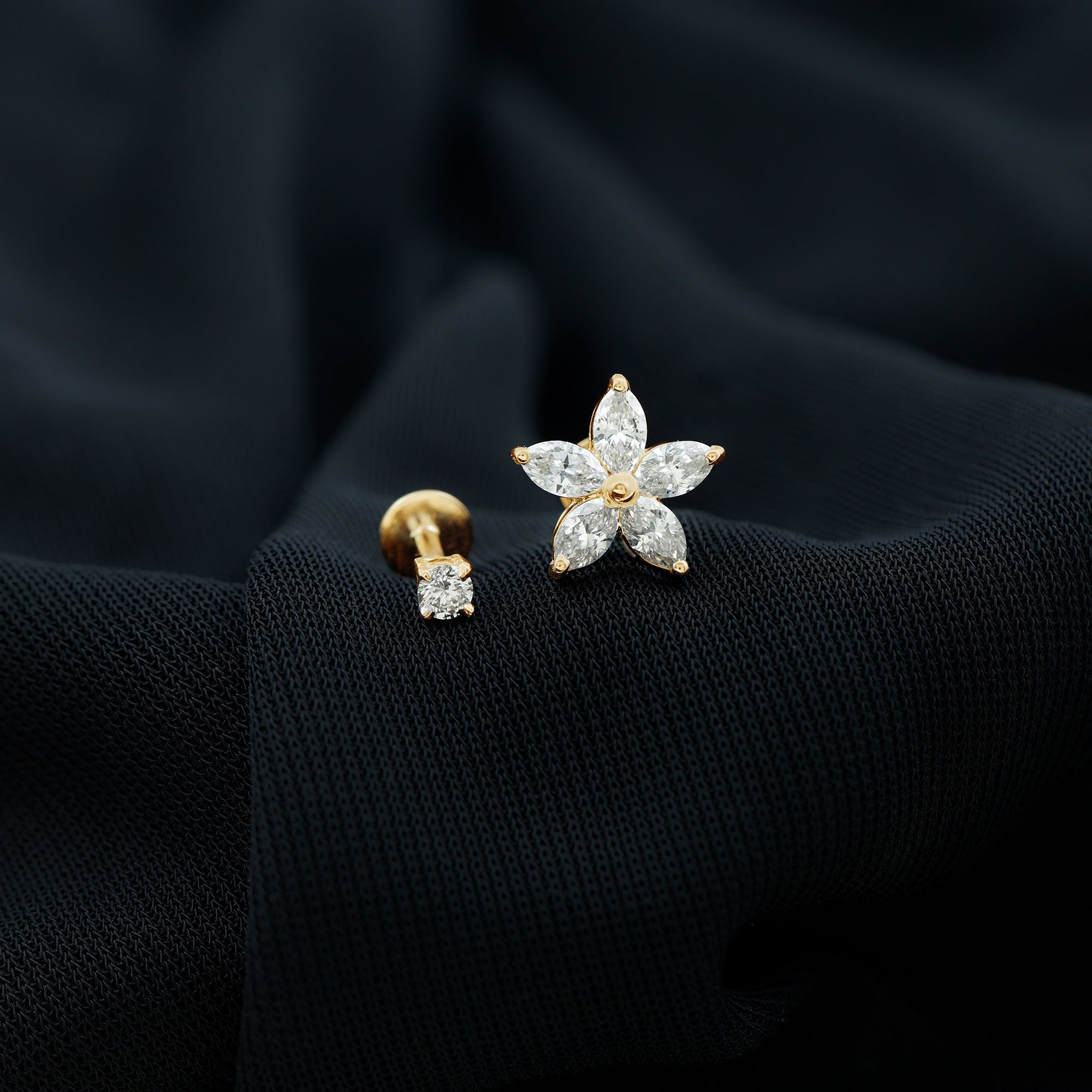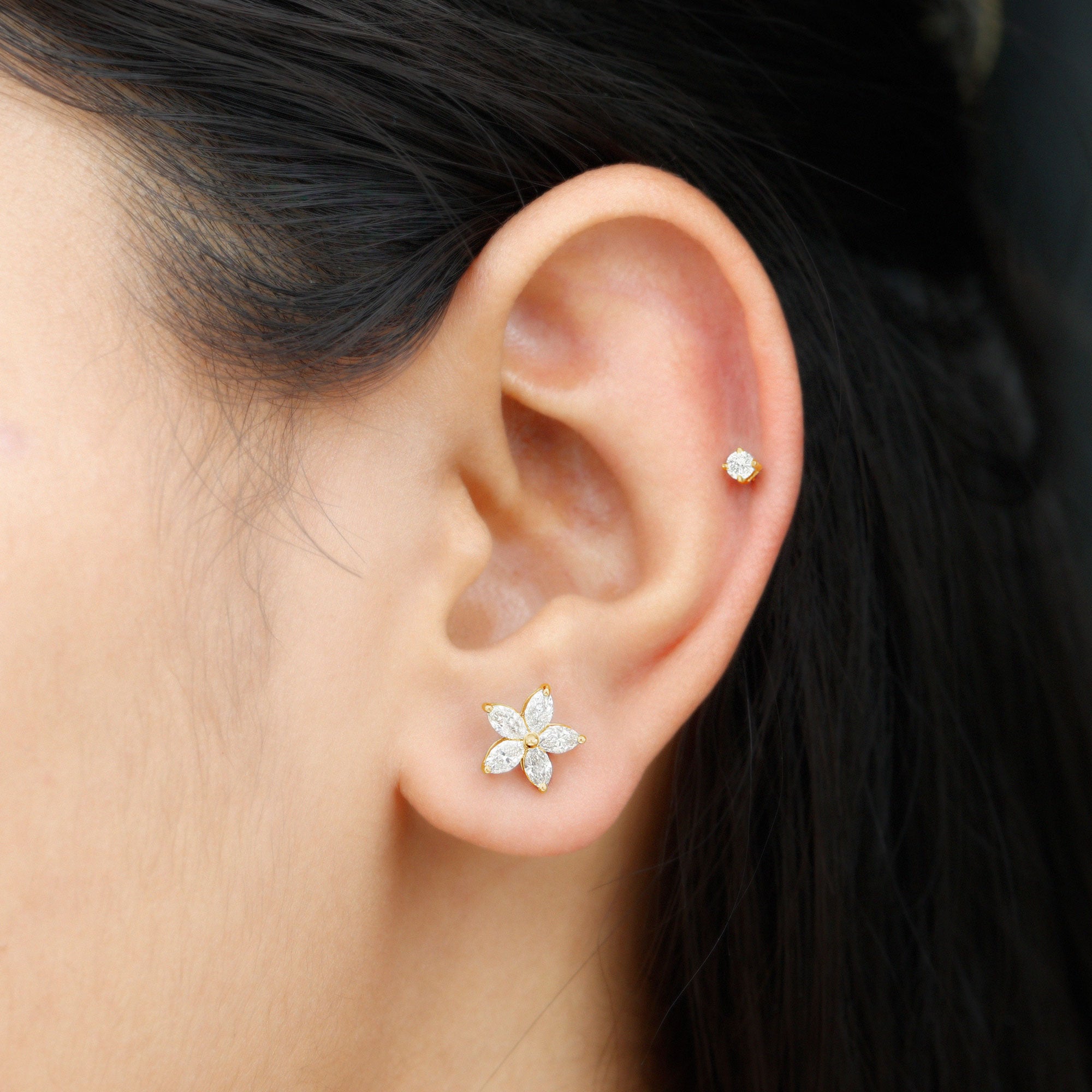 Marquise Moissanite Flower Cartilage Earring Set ‐ D-VS1 / 14K Yellow Gold / Flat Back 4.5 MM