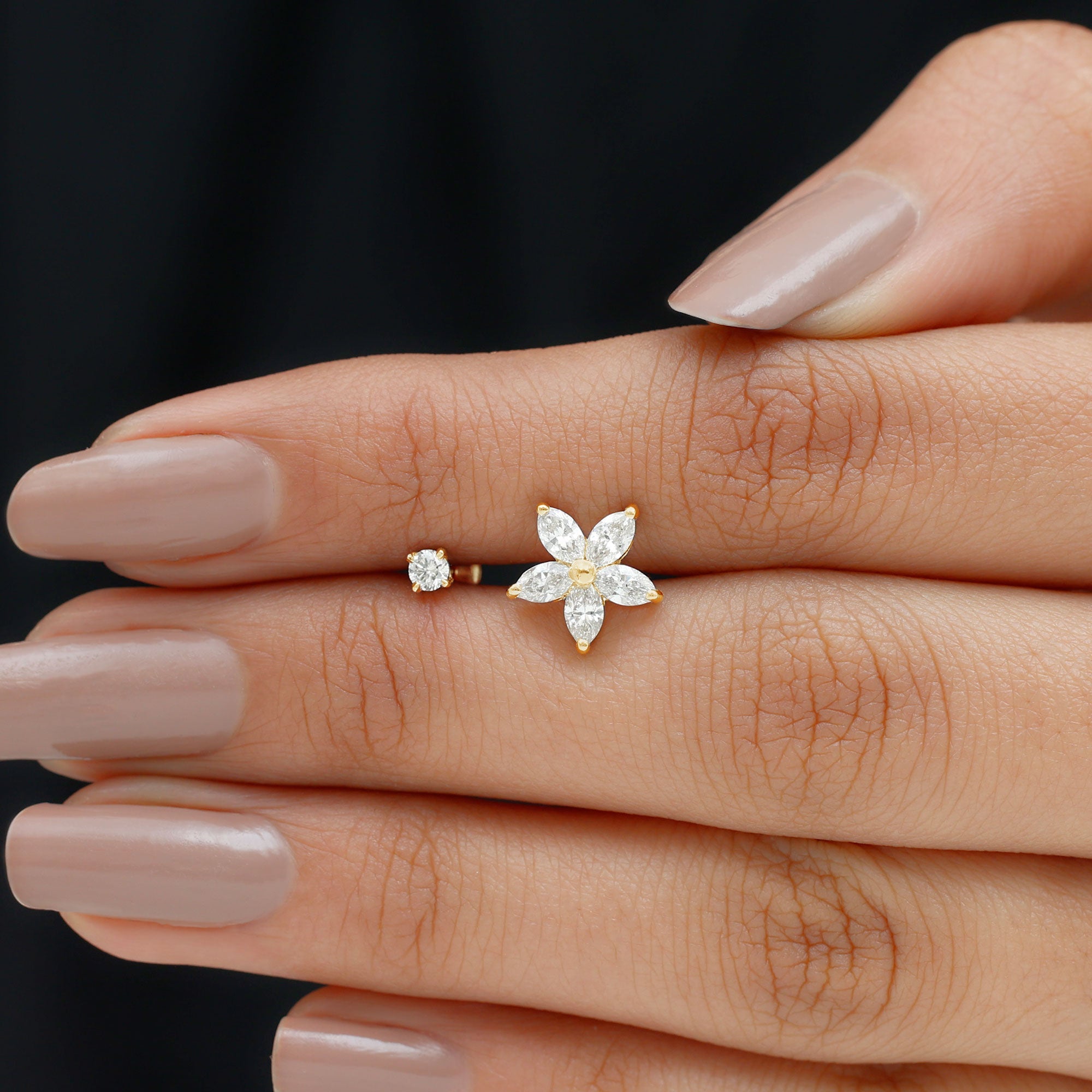Marquise Moissanite Flower Cartilage Earring Set ‐ D-VS1 / 14K Yellow Gold / Select Option