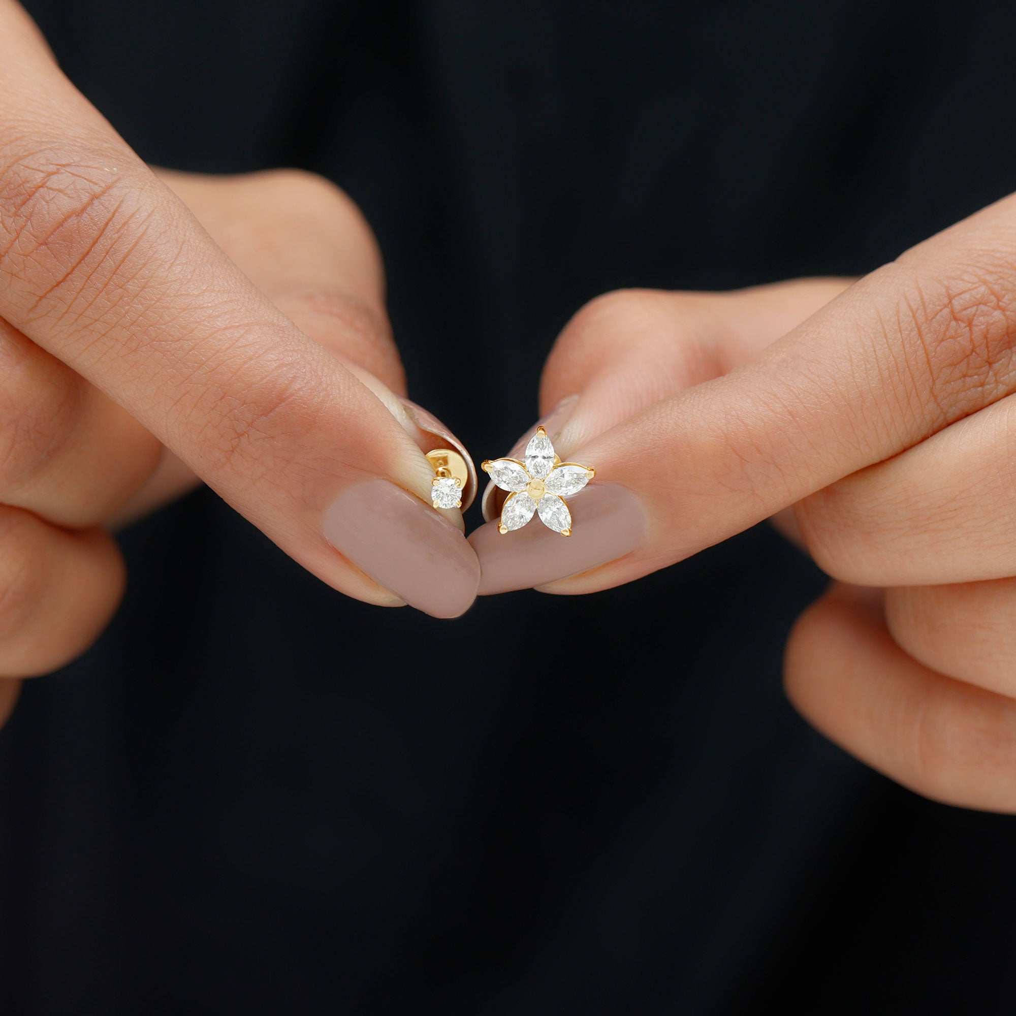 Marquise Moissanite Flower Cartilage Earring Set ‐ D-VS1 / 10K White Gold / Flat Back 5.5 MM