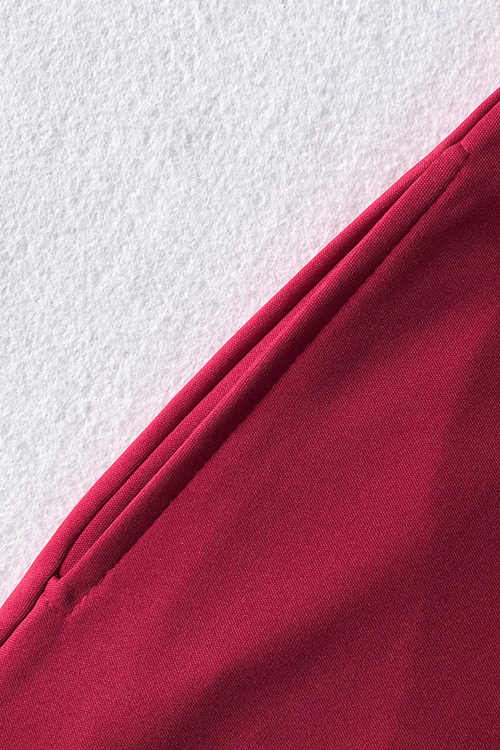 Mock Neck Tie-Waist Half Sleeve Jumpsuit ‐ Deep Red / M