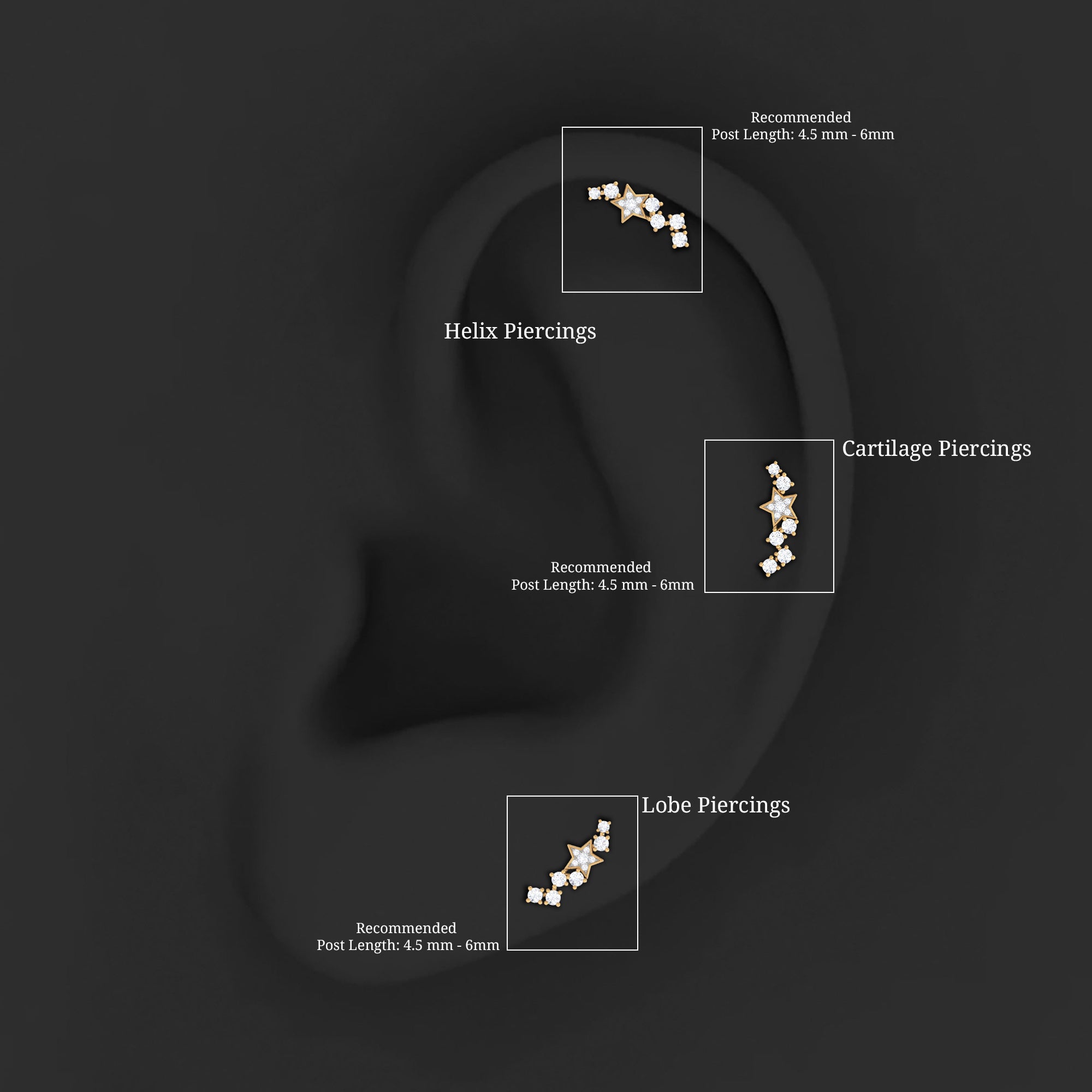 Moissanite Star Celestial Crawler Earring for Helix Piercing ‐ D-VS1 / 10K Yellow Gold / Select Option