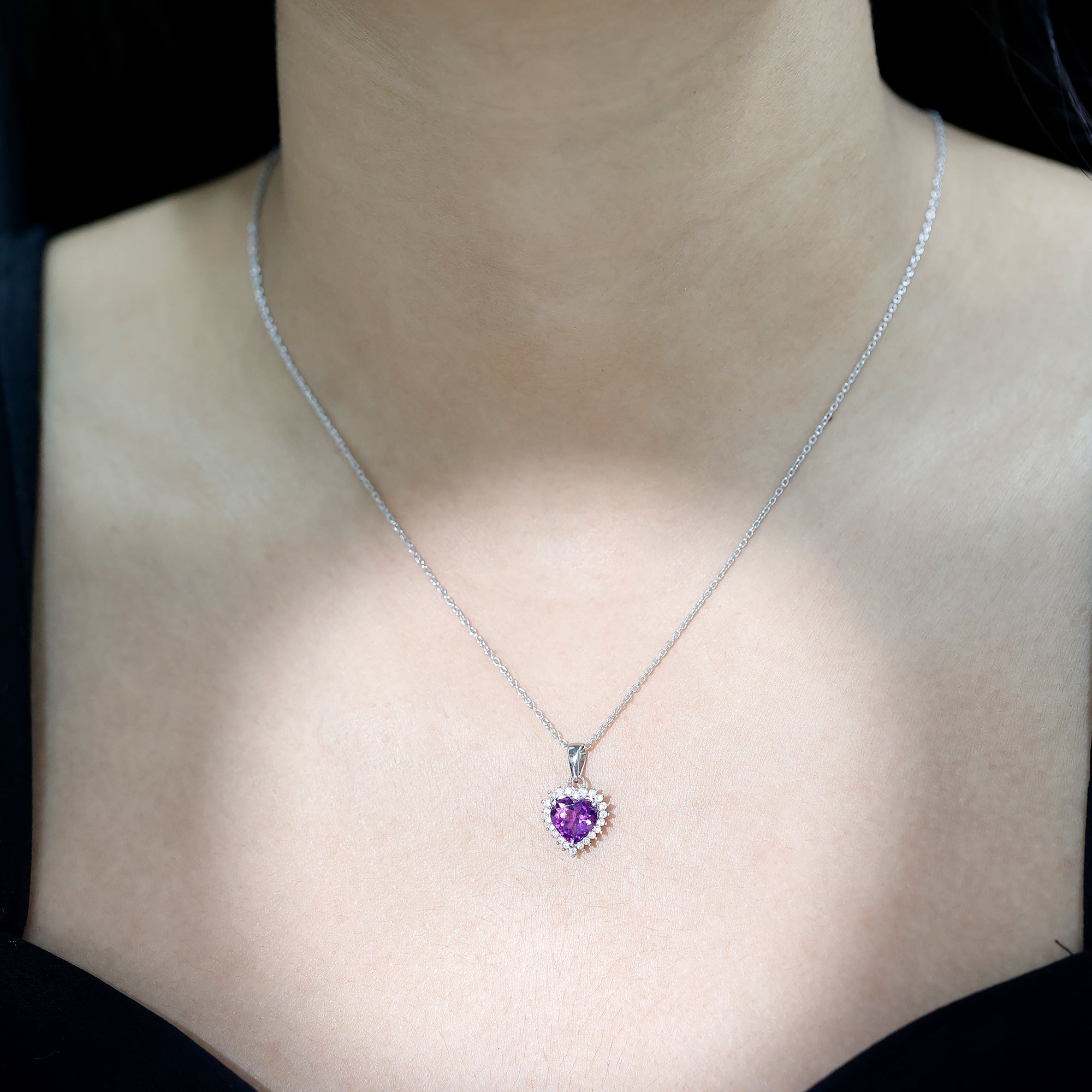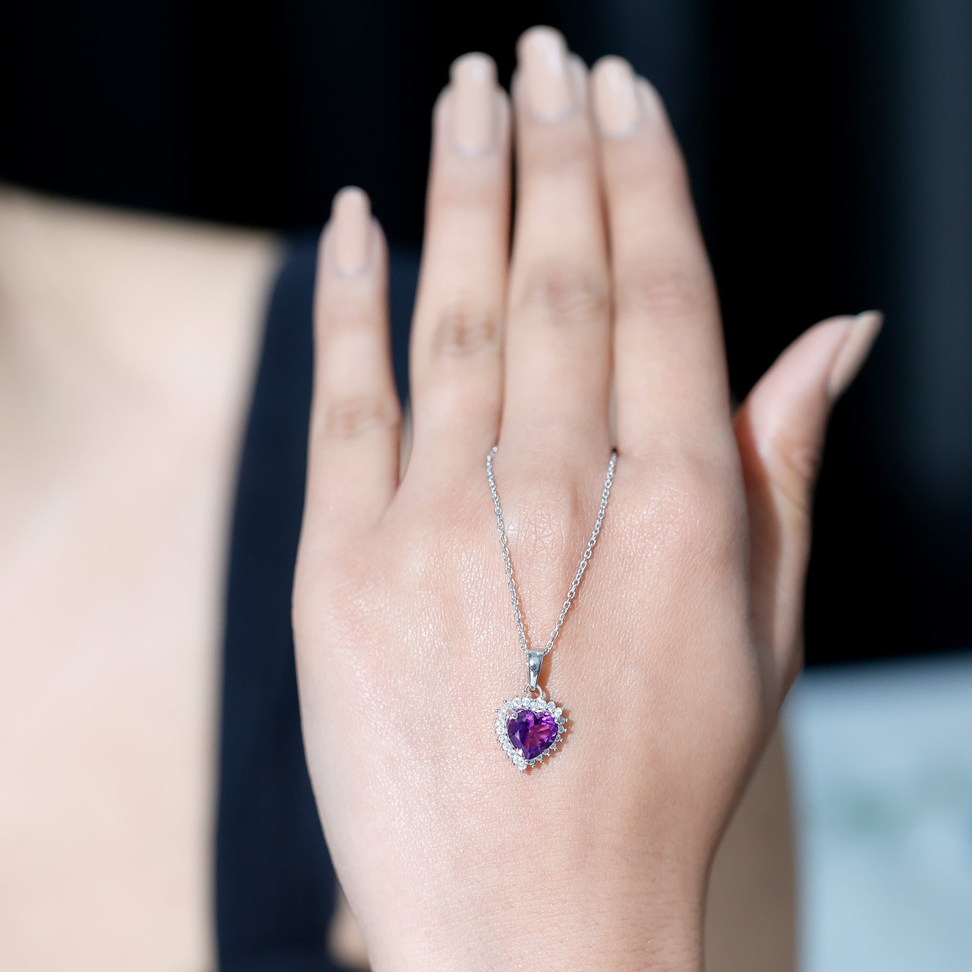 Natural 8 MM Amethyst Heart Necklace with Moissanite Halo