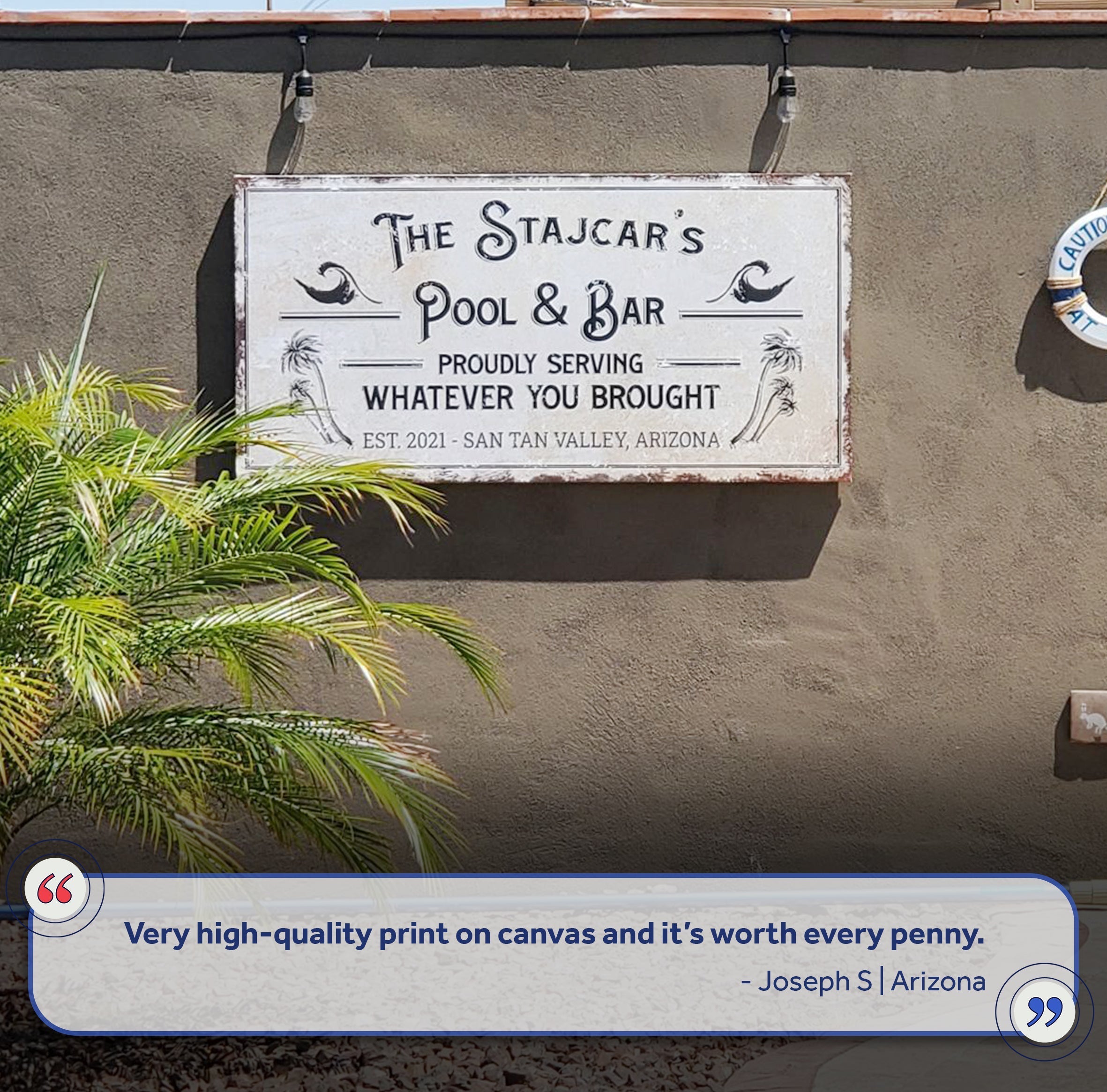 Personalized Rustic Pool Sign ‐ 60x30 inch Extra Large Premium Gallery Wrapped / Style 1
