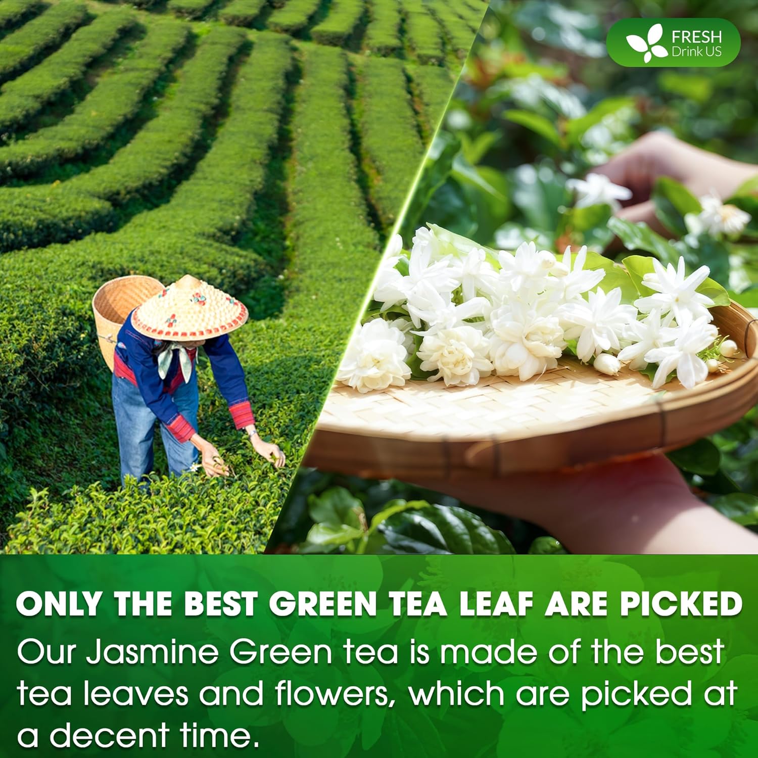 Premium Jasmine Green Tea Bags. Jasmine Green Herbal Tea. Made with Natural Material Tea Bags. No Sugar, No Gluten, Vegan. ‐ 135 Tea Bags
