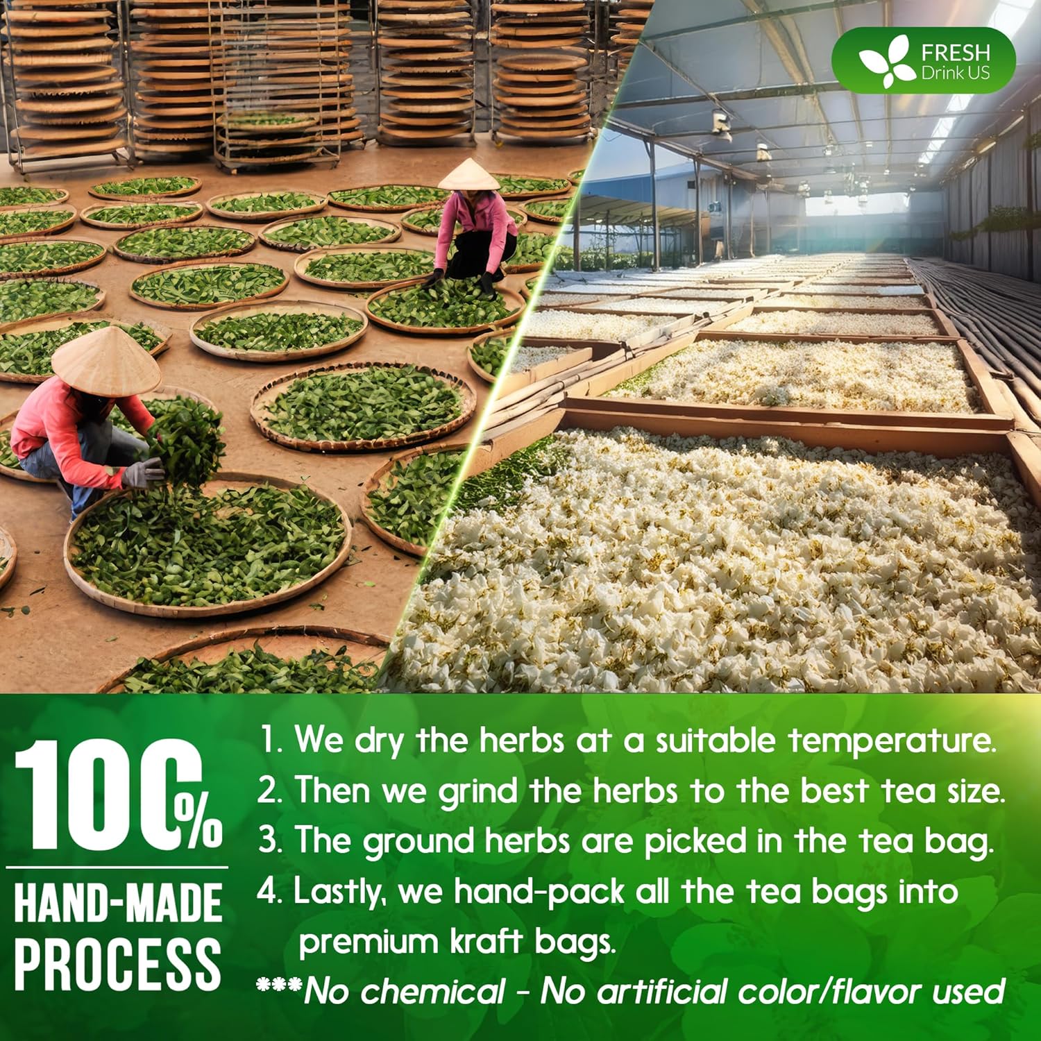 Premium Jasmine Green Tea Bags. Jasmine Green Herbal Tea. Made with Natural Material Tea Bags. No Sugar, No Gluten, Vegan. ‐ 55 Tea Bags