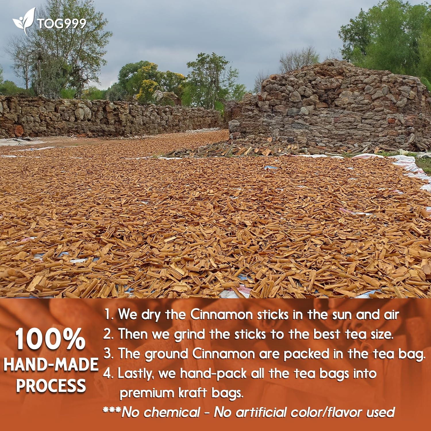 - ☘️ FROM FRESHLY PICKED, NATURALLY DRIED CINNAMON: The best Cinnamon are picked at a decent time, washed with fresh water, dried in the sun, ground with years of experience to the best tea size, and carefully packed to preserve the flavor and distinct aromatic effect.