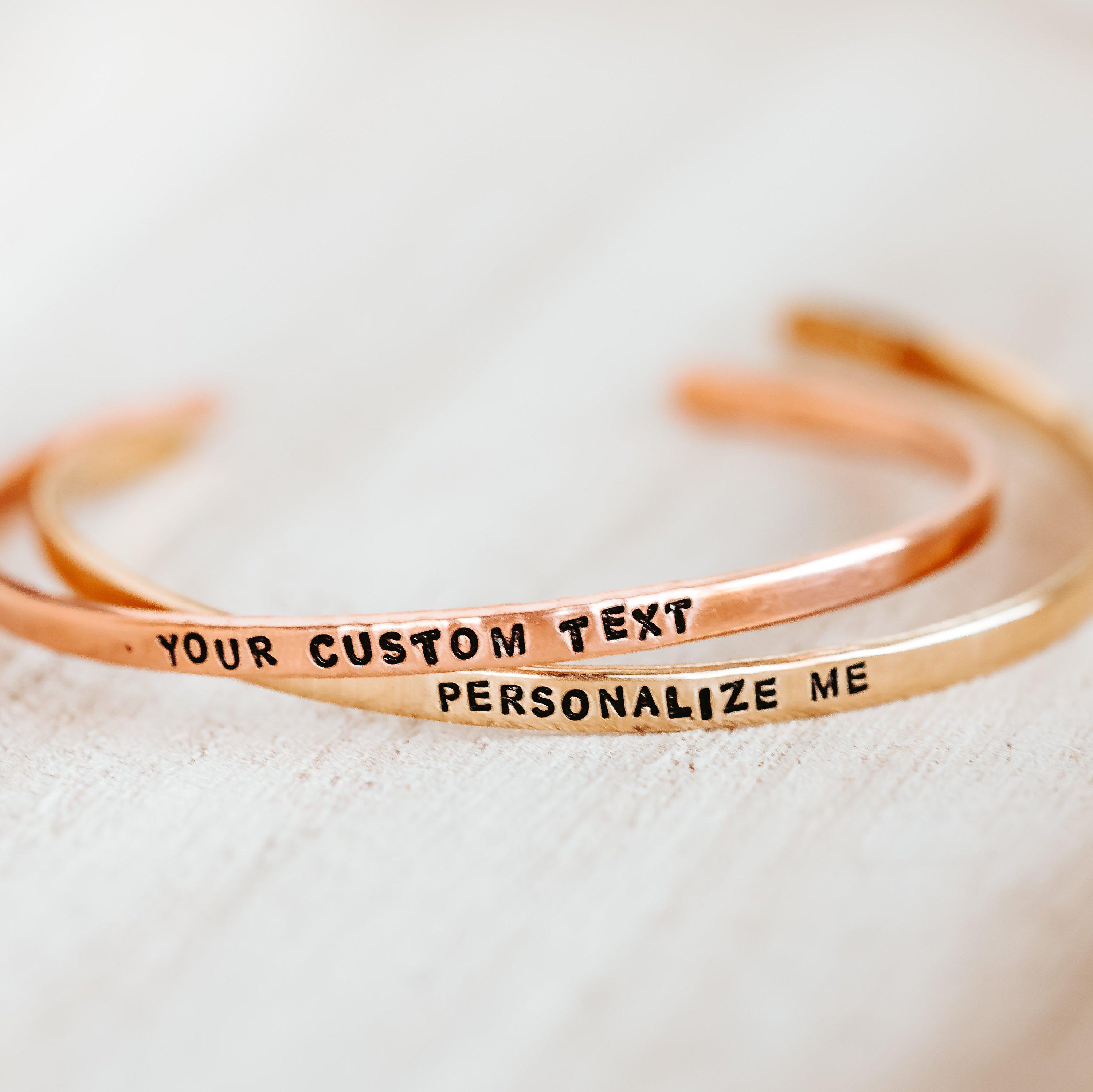 RESILIENT Skinny Cuff Bracelet ‐ Pink Copper / Your Custom Text