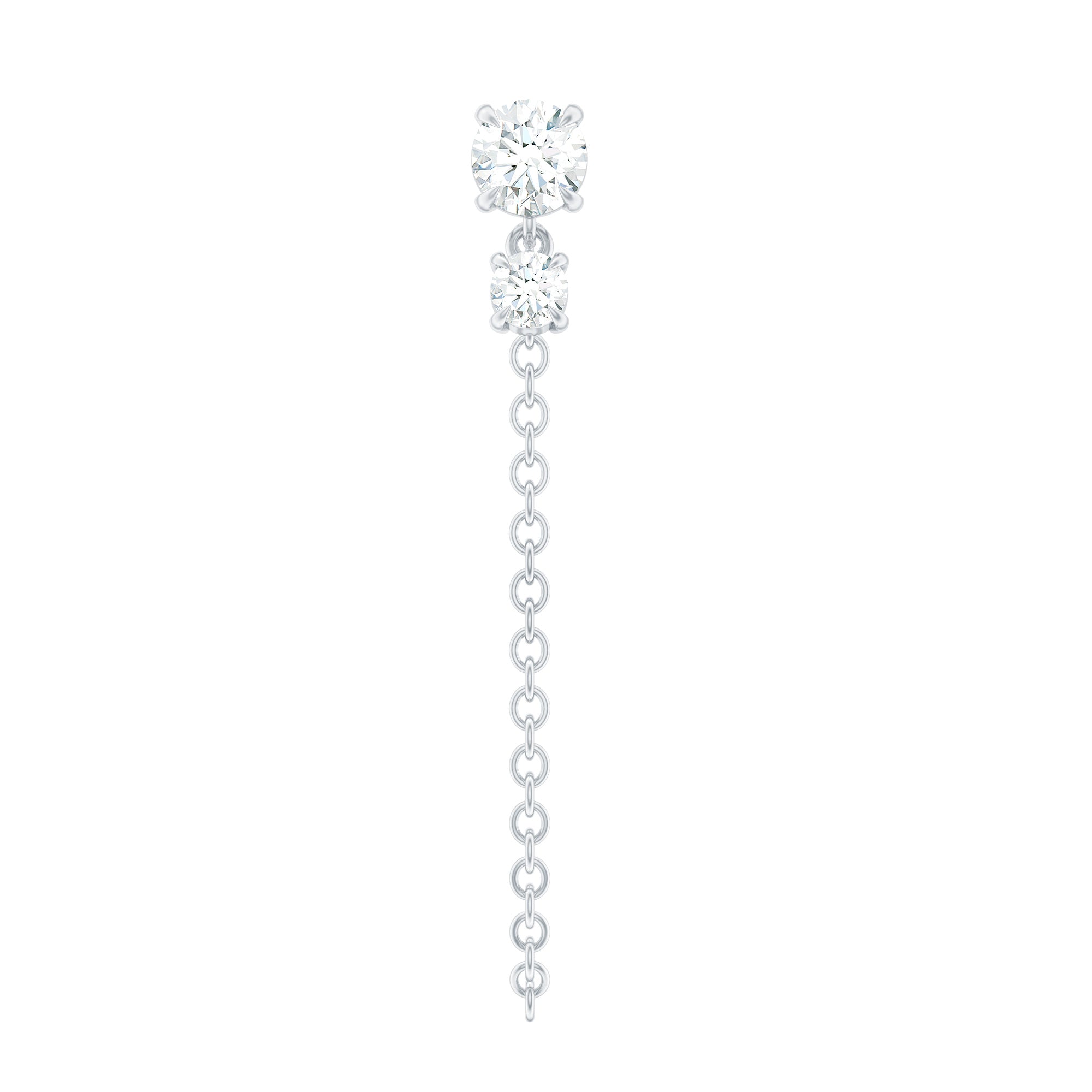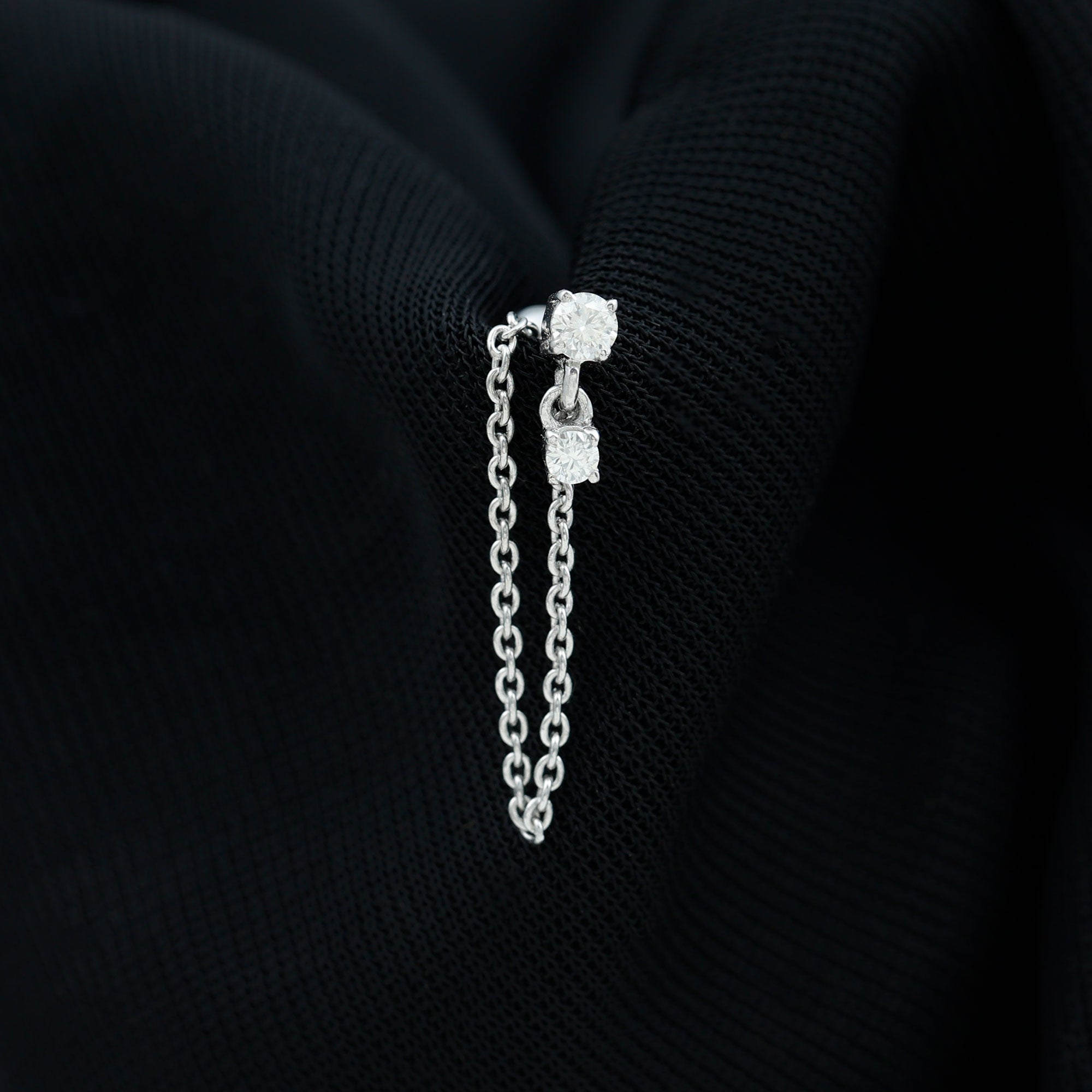 Round Moissanite Chain Drop Earring for Cartilage Piercing ‐ D-VS1 / 18K White Gold / Select Option