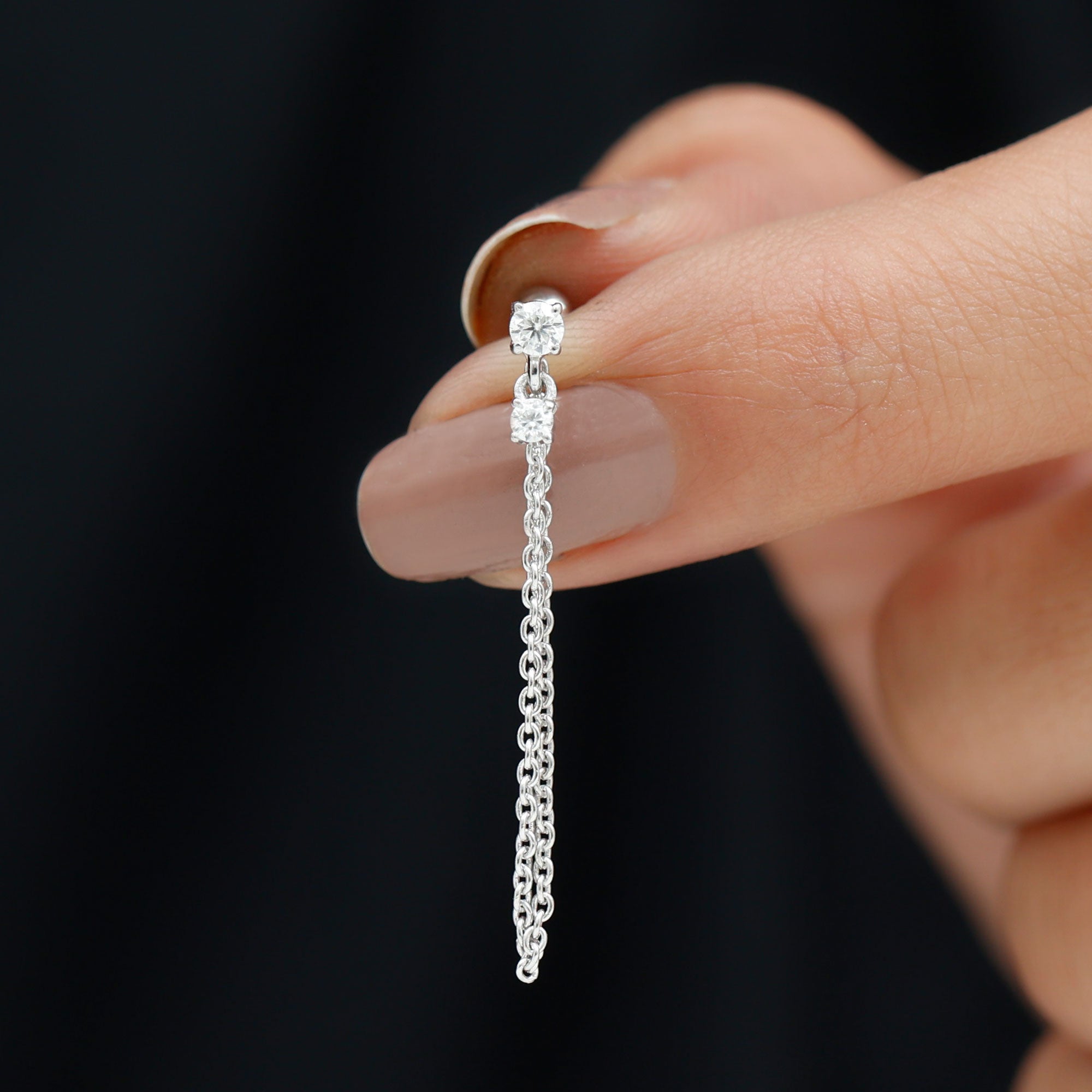 Round Moissanite Chain Drop Earring for Cartilage Piercing ‐ D-VS1 / 14K White Gold / Select Option