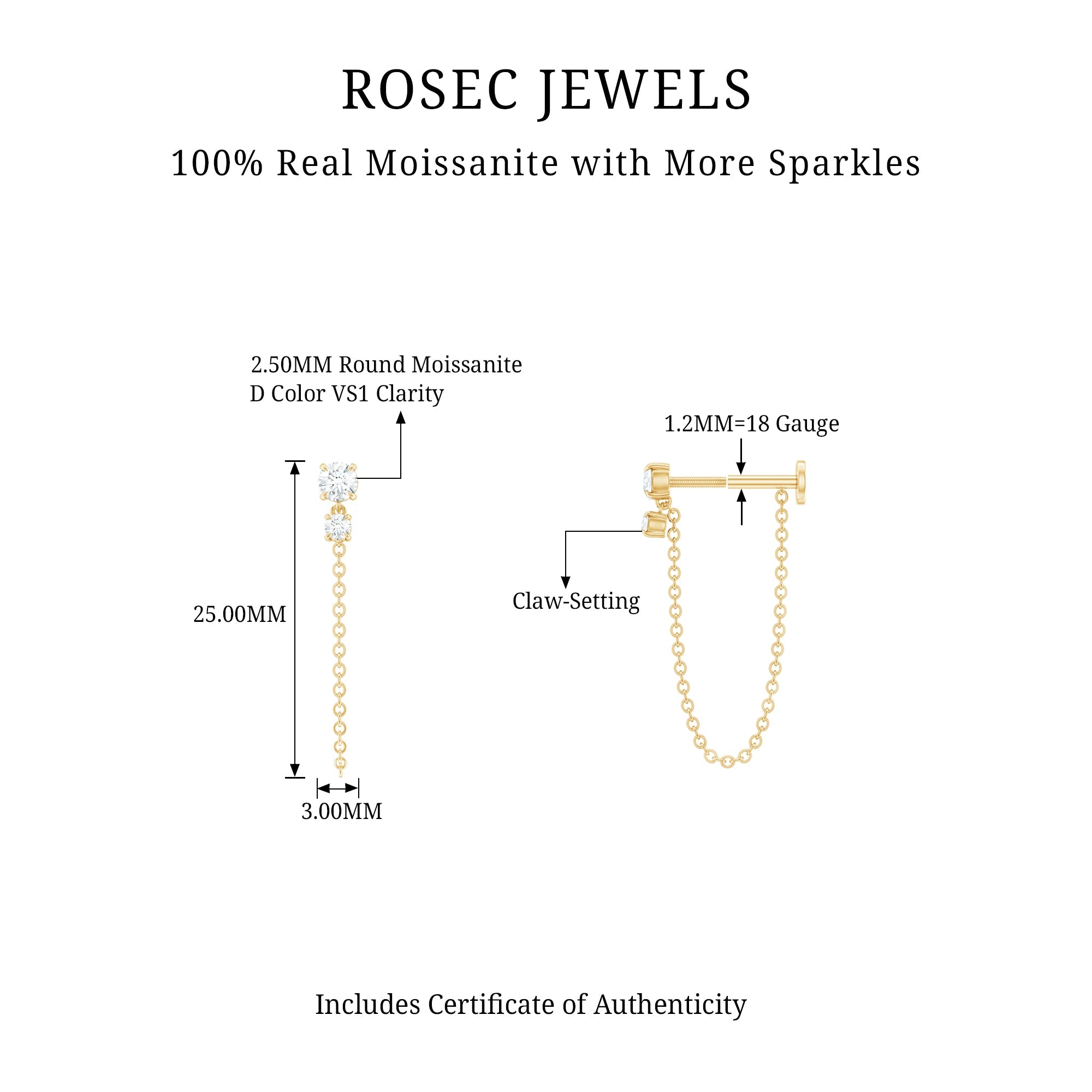 Round Moissanite Chain Drop Earring for Cartilage Piercing