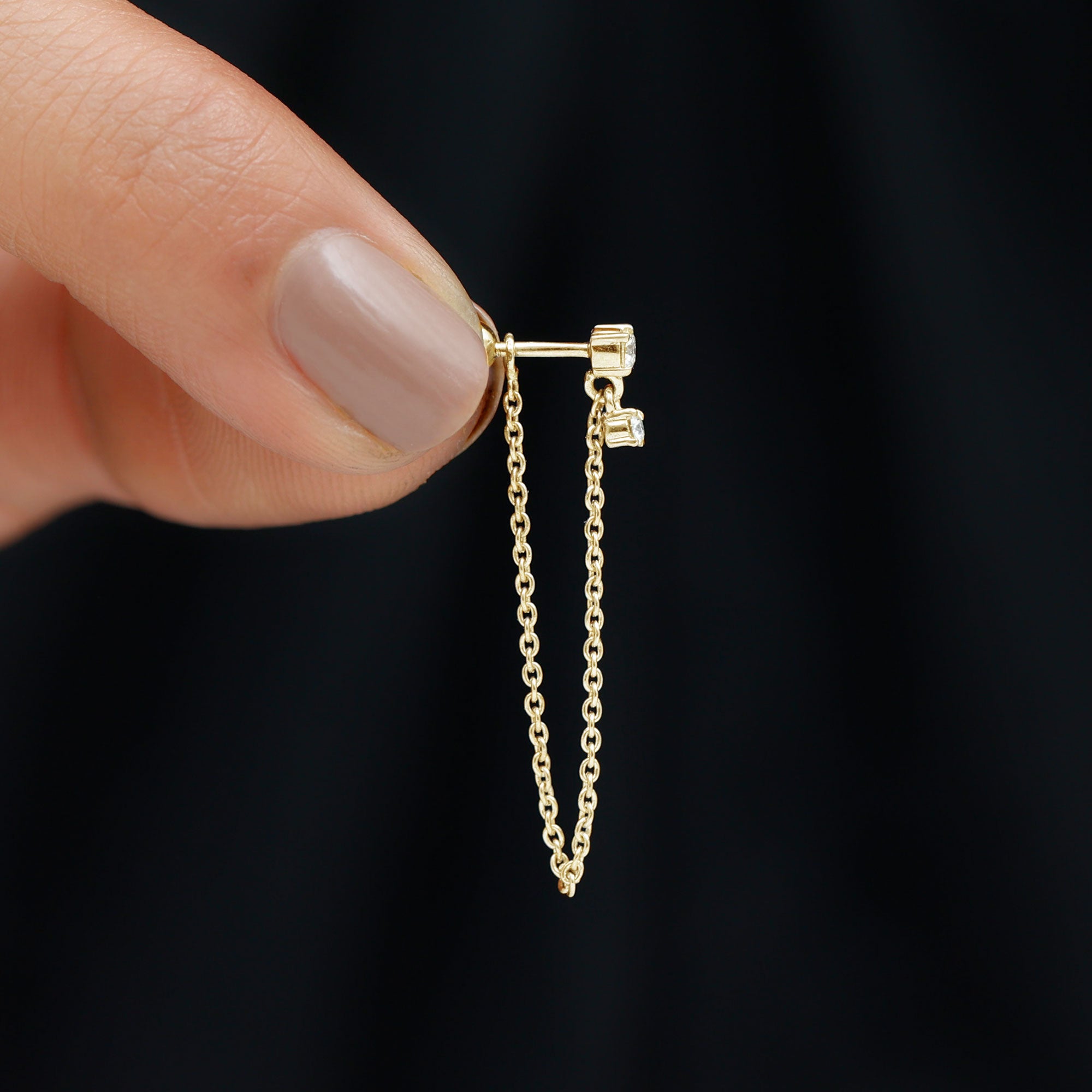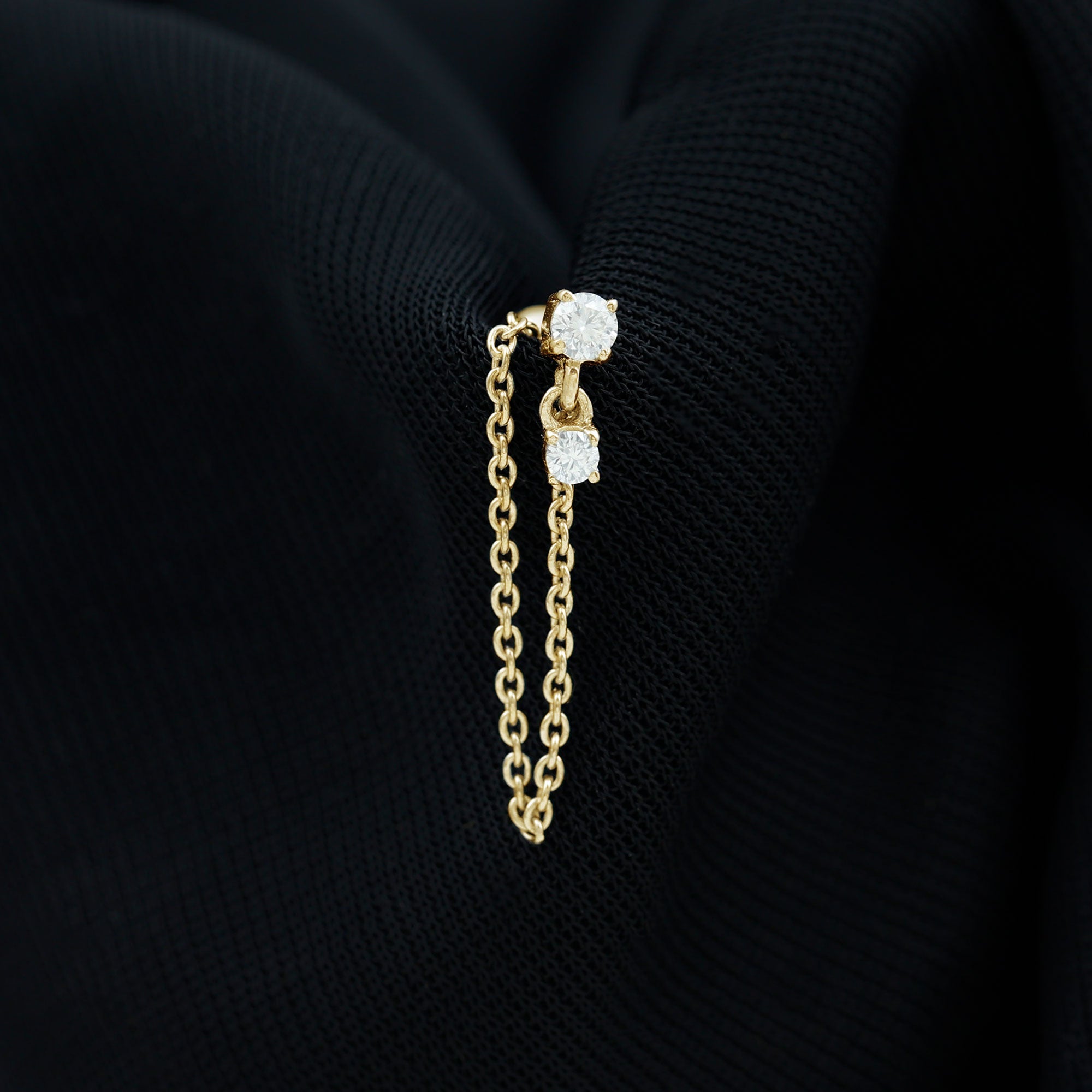 Round Moissanite Chain Drop Earring for Cartilage Piercing ‐ D-VS1 / 14K Yellow Gold / Select Option
