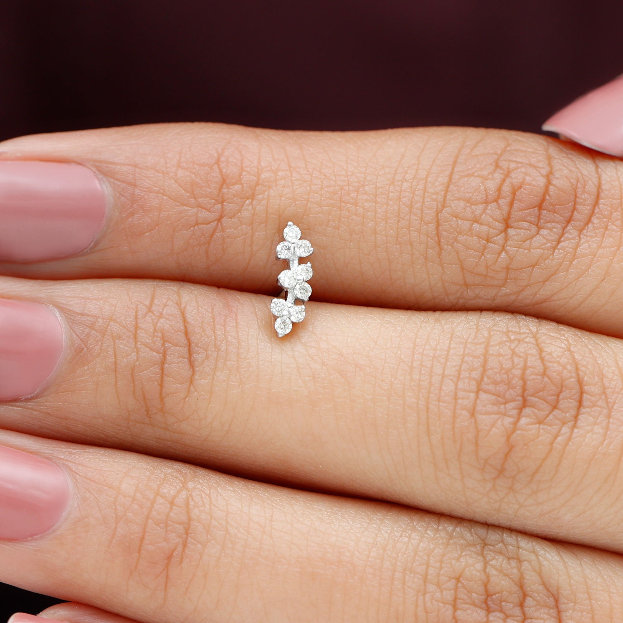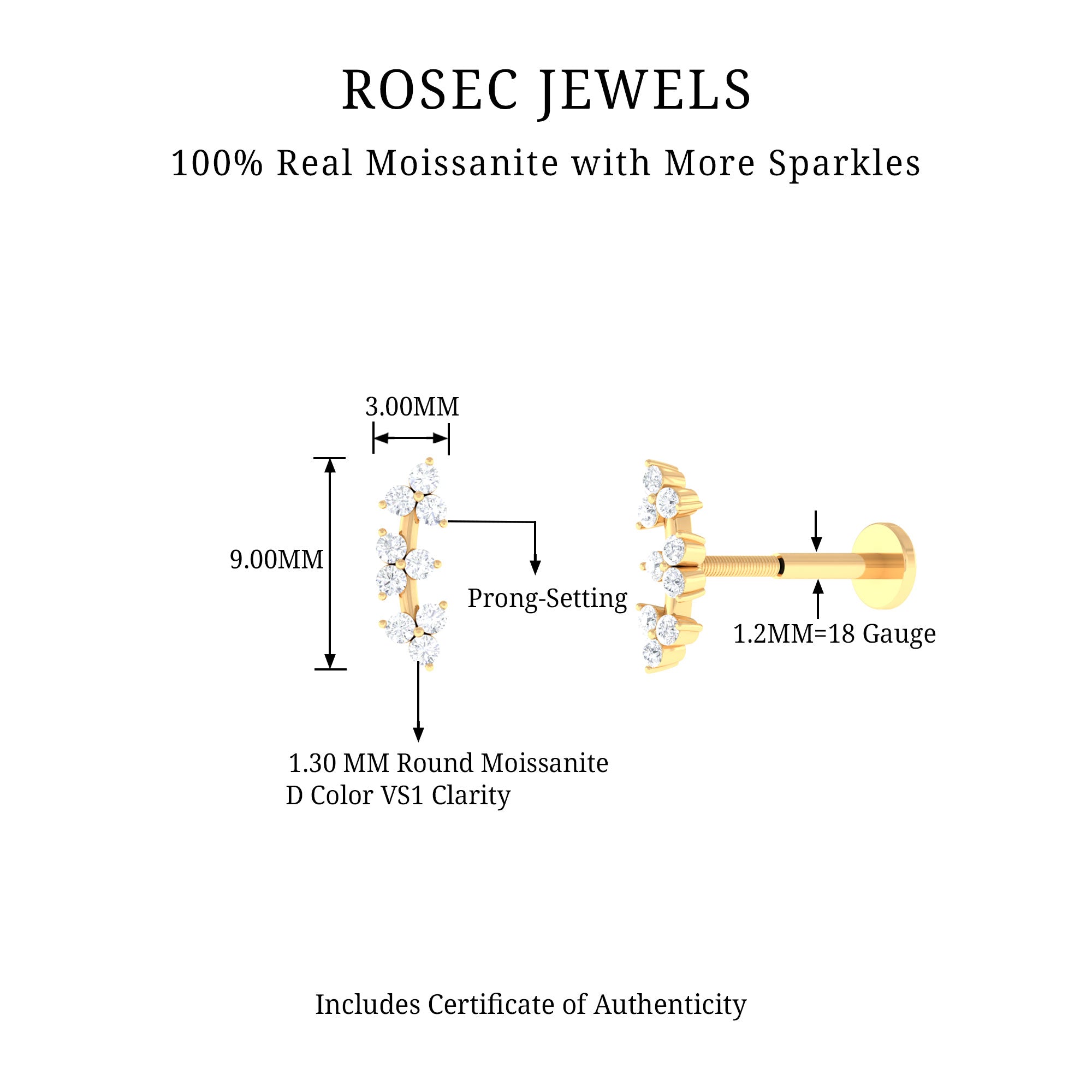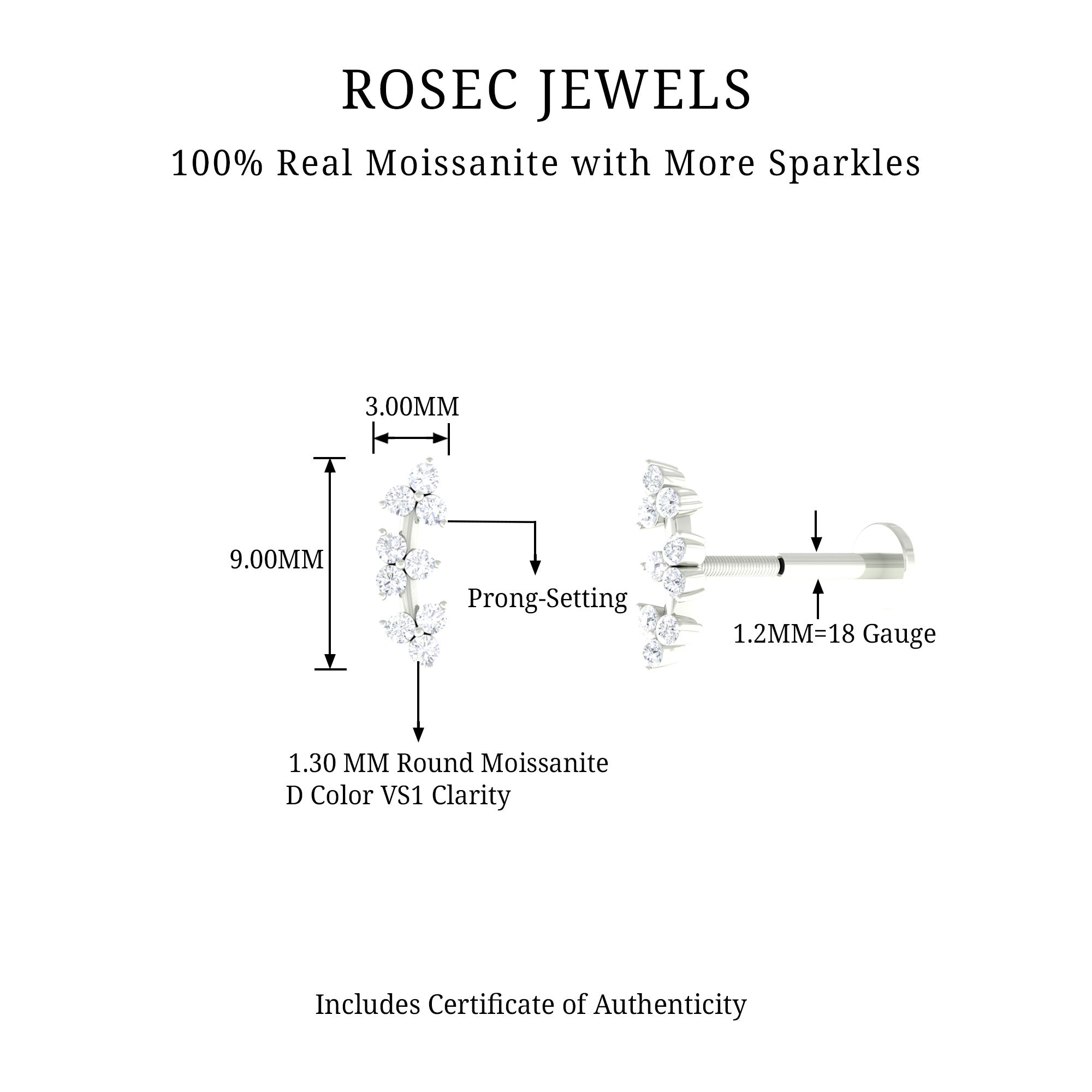 Unique Moissanite Cartilage Climber Earring in Gold ‐ D-VS1 / 10K White Gold / Flat Back 4.5 MM