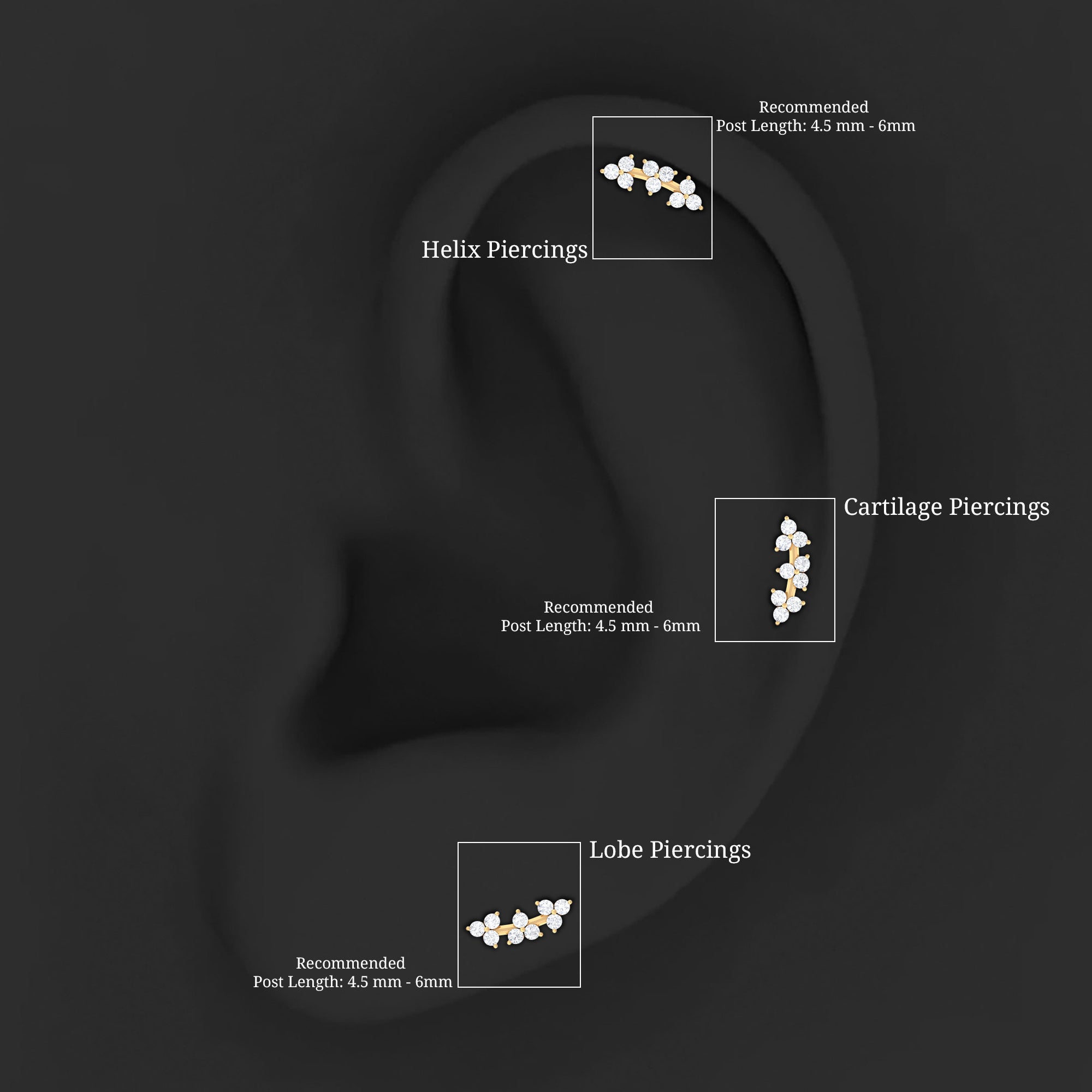 Unique Moissanite Cartilage Climber Earring in Gold ‐ D-VS1 / 10K White Gold / Select Option