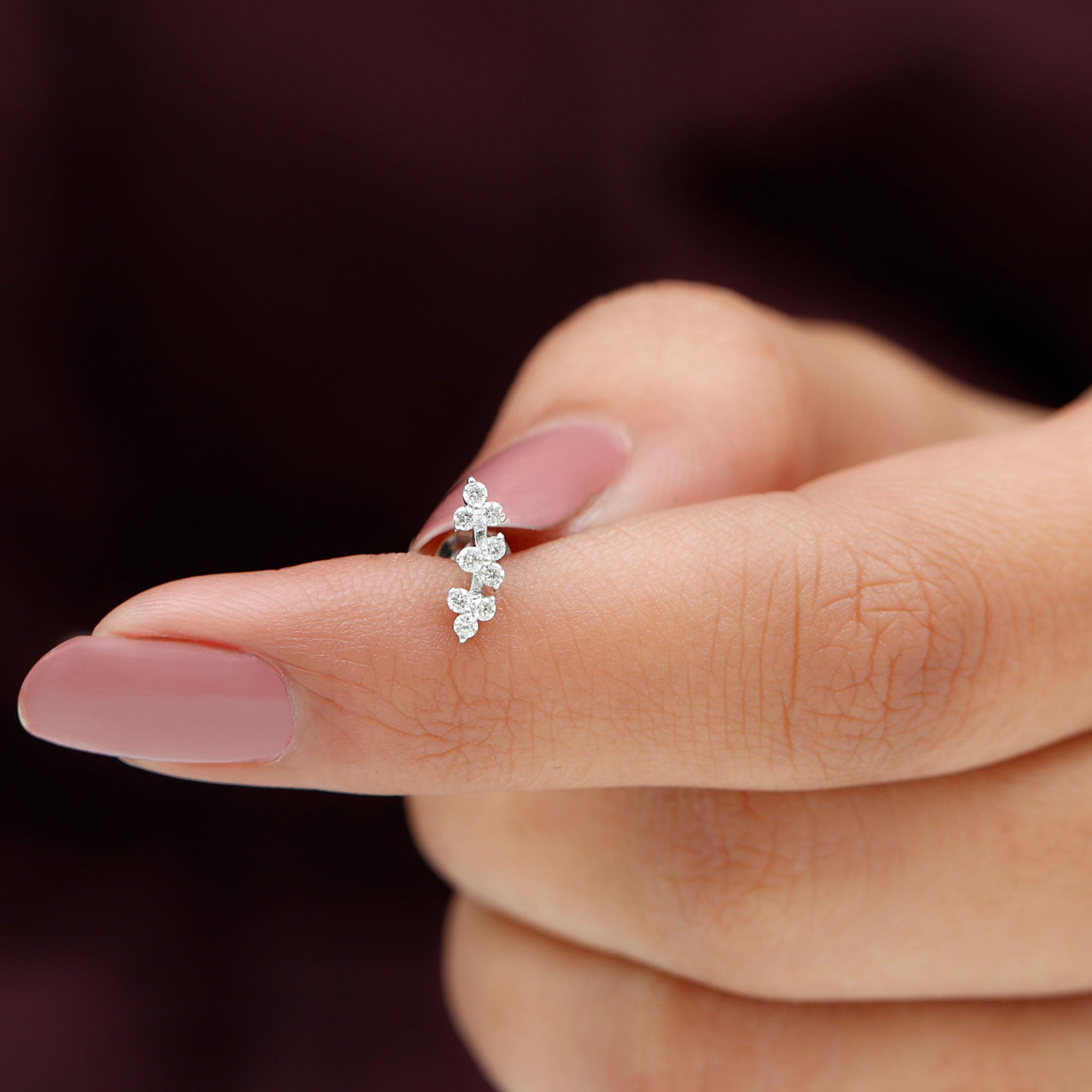 Unique Moissanite Cartilage Climber Earring in Gold ‐ D-VS1 / 10K White Gold / Flat Back 7.5 MM
