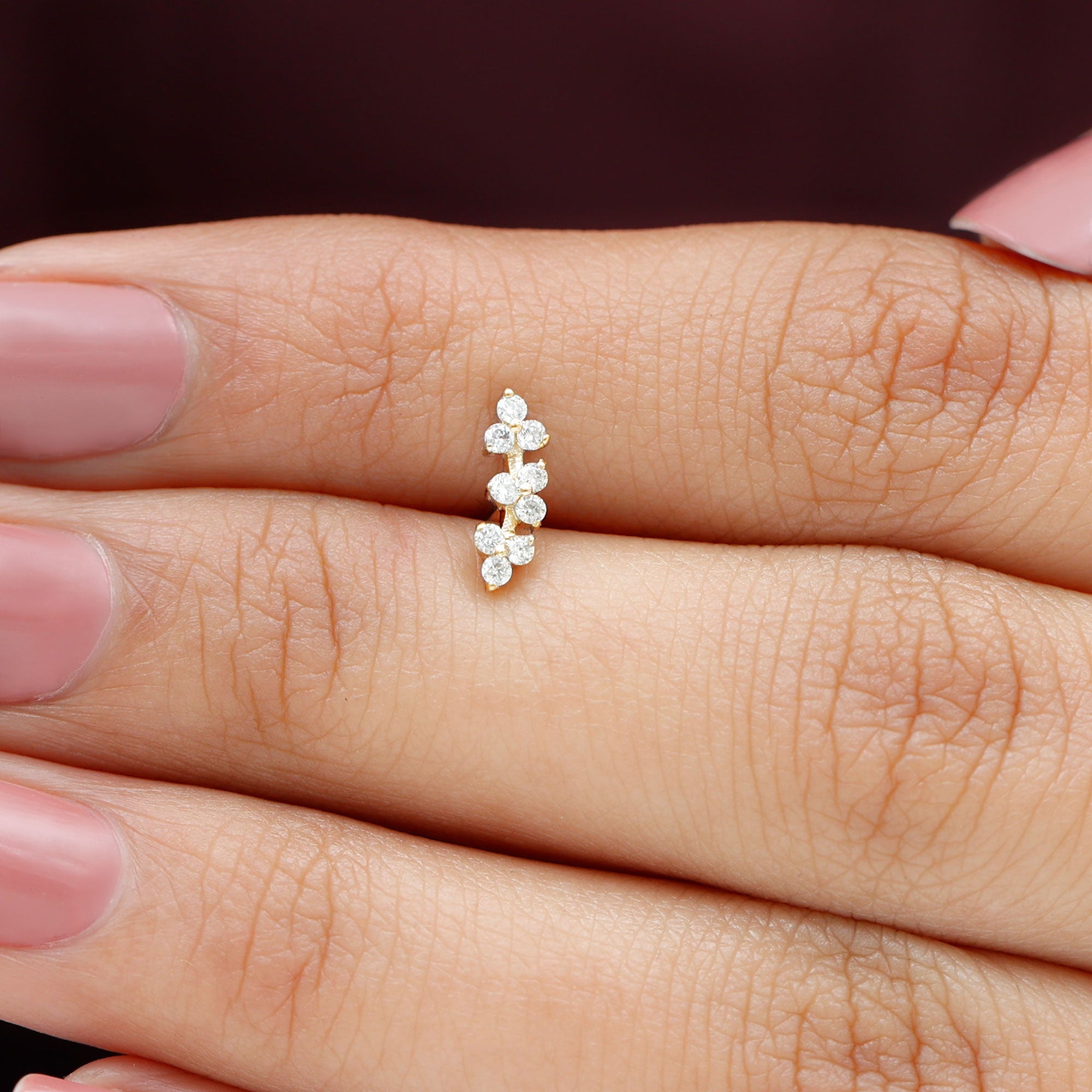 Unique Moissanite Cartilage Climber Earring in Gold ‐ D-VS1 / 10K Yellow Gold / Flat Back 7.5 MM