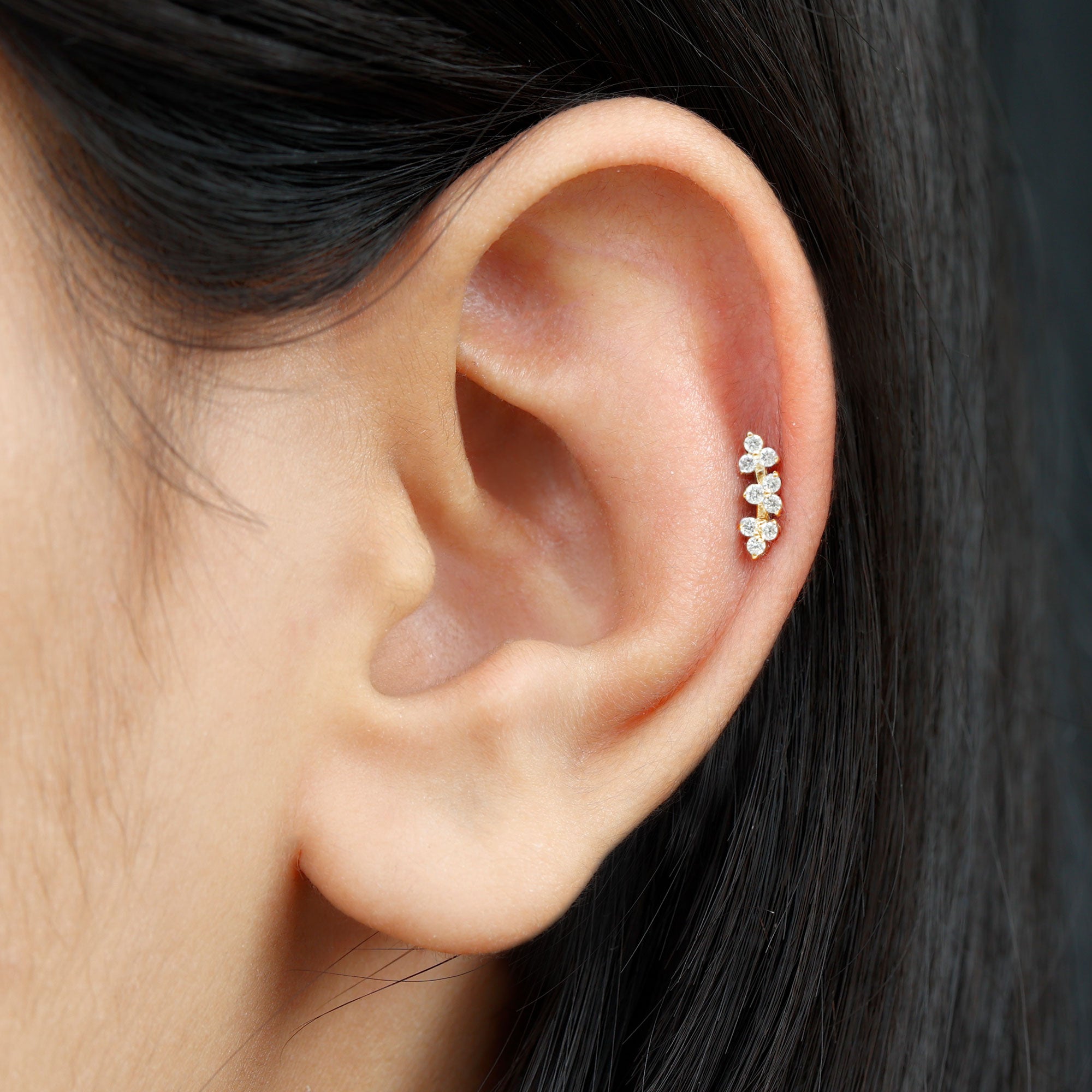 Unique Moissanite Cartilage Climber Earring in Gold ‐ D-VS1 / 14K Yellow Gold / Select Option