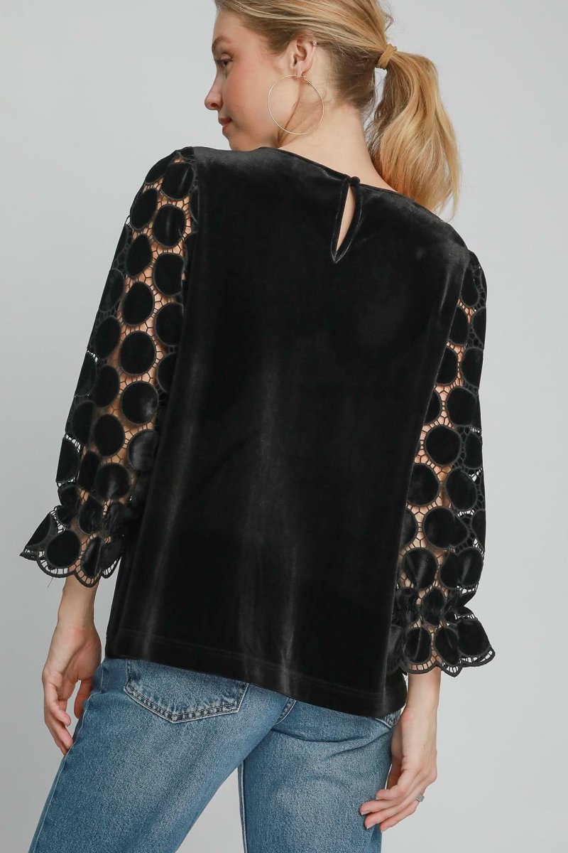 Charming Polka Dot Lace Long Sleeve Blouse with Round Neck ‐ Black / M