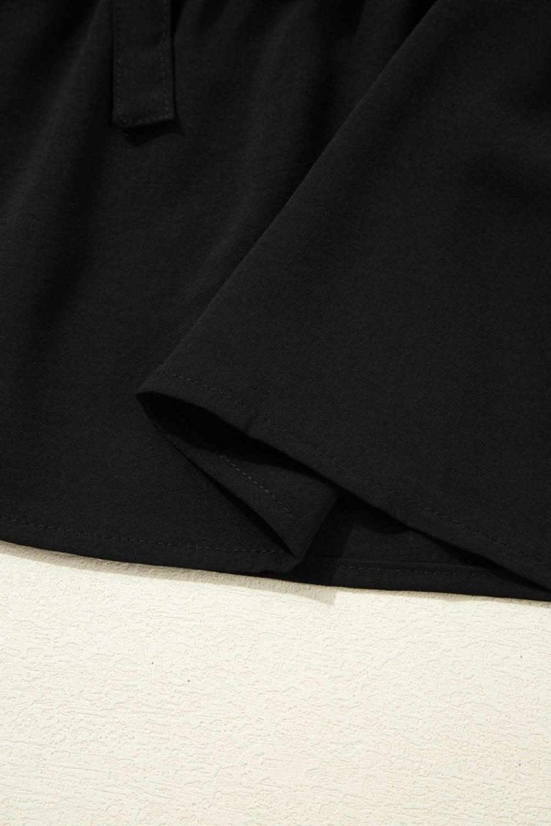 Chic Black Peplum Blouse with Puff Sleeves and Bowknot Detail ‐ Black / XL / 100%Polyester
