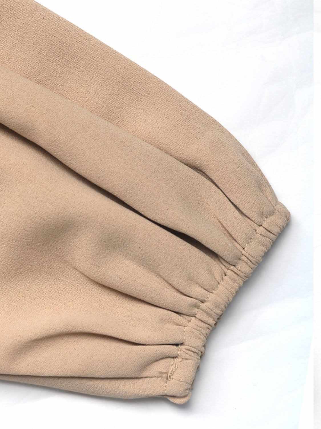 Chic tie neck long sleeve blouse with frill detailing ‐ Tan / XL