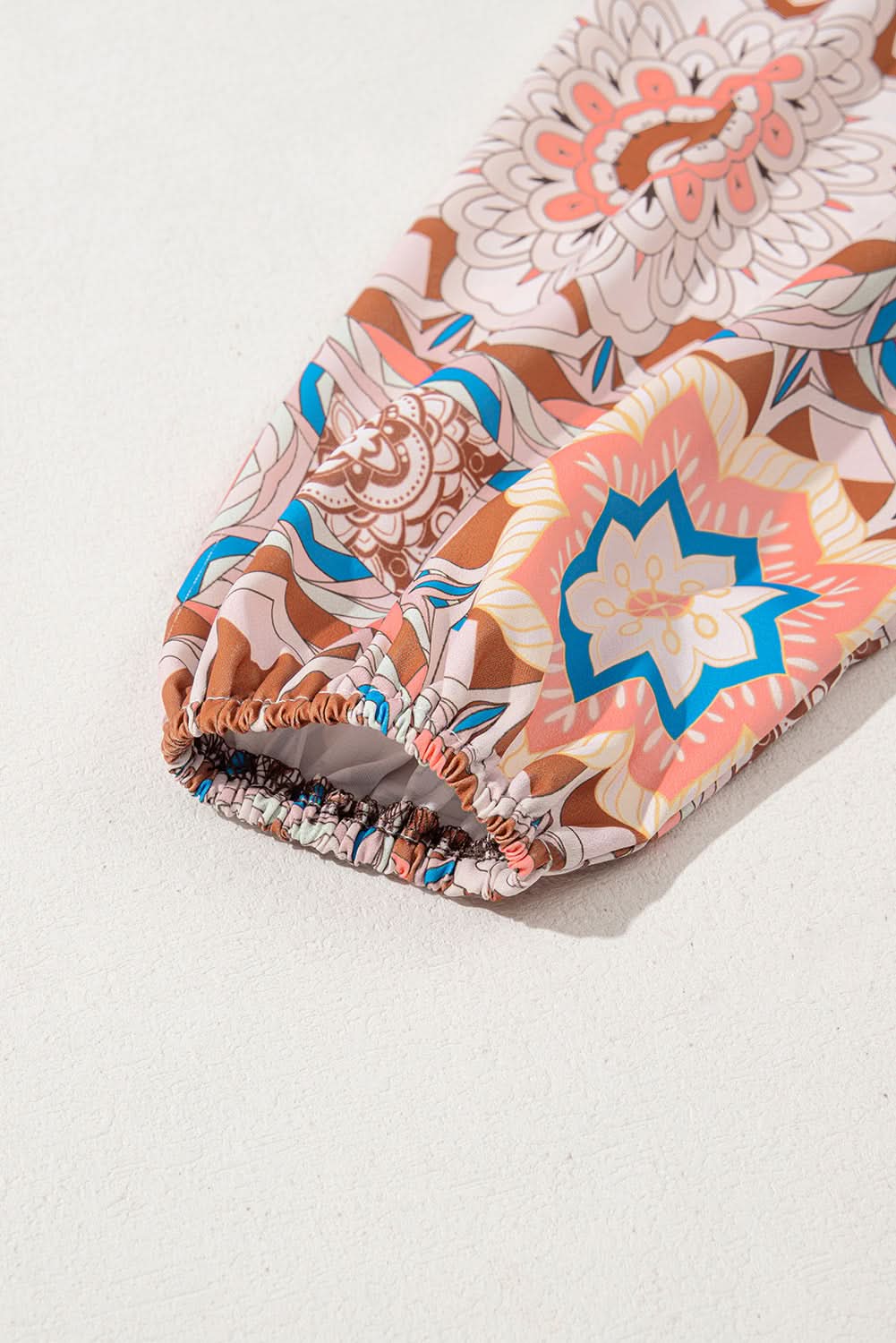Elevate your wardrobe with our Coffee Ruffled Floral Sleeve Blouse. This charming top features: