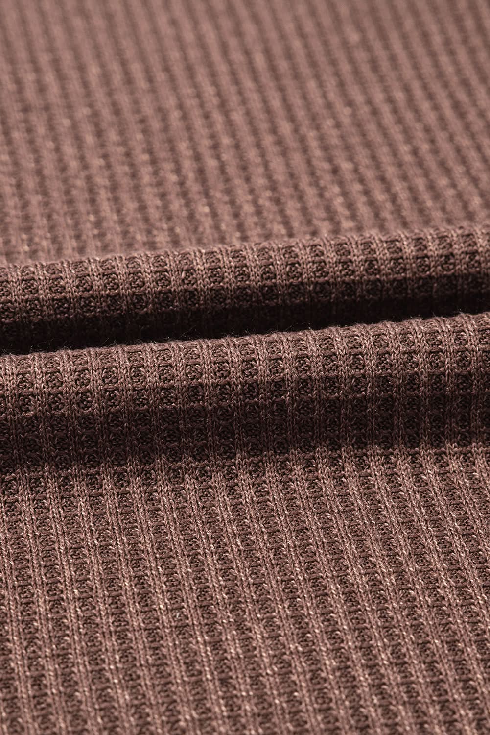 Coffee Ruffled Floral Sleeve Patchwork Waffle Knit O Neck Blouse ‐ Coffee / M / 100%Polyester