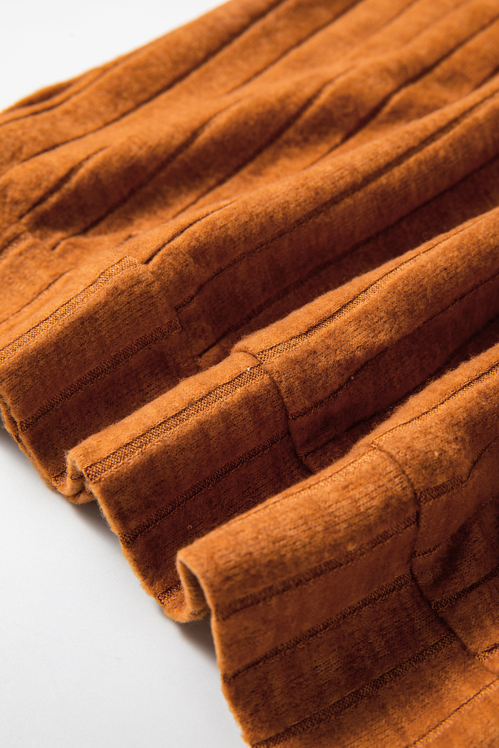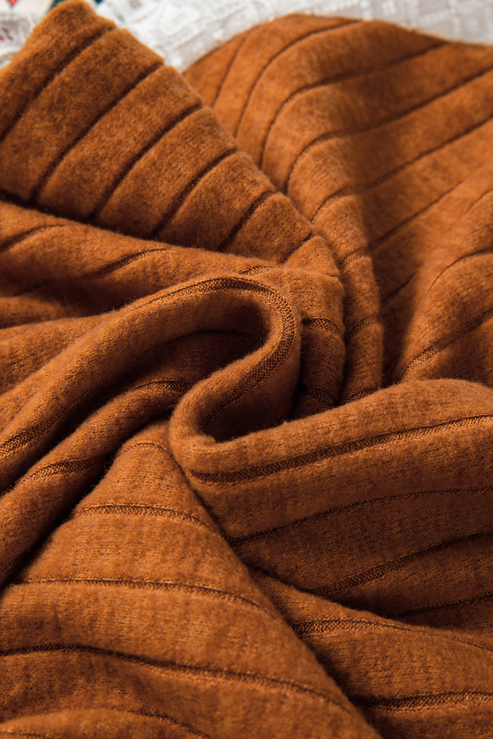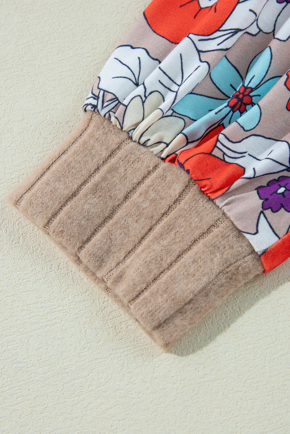 Floral Ribbed Patchwork Long Sleeve Blouse ‐ Cinnamon / XL