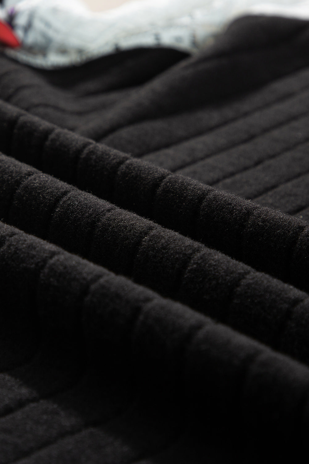 Floral Ribbed Patchwork Long Sleeve Blouse ‐ Black / S