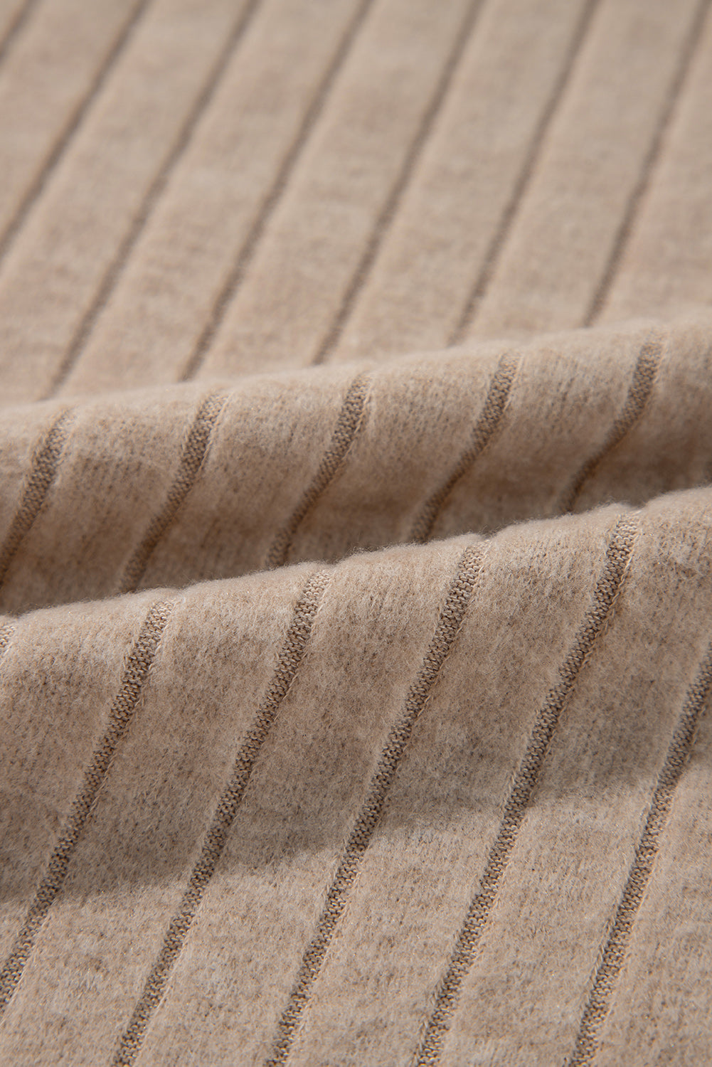 Floral Ribbed Patchwork Long Sleeve Blouse ‐ Parchment / 2XL