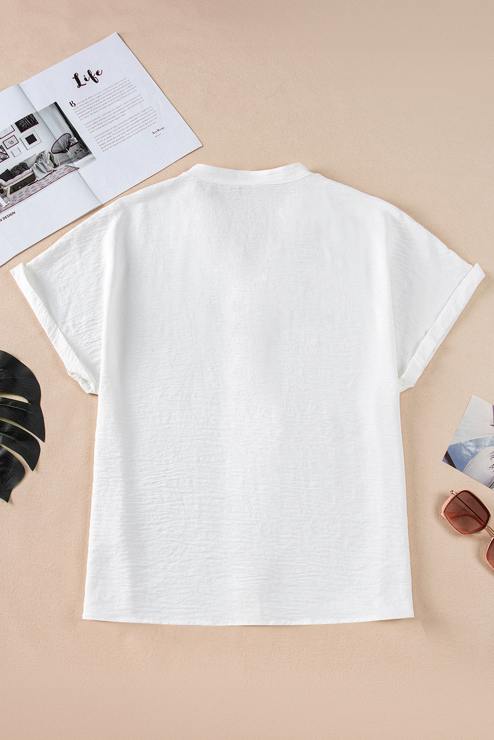 Lilla Notched Neck Batwing Sleeve Lightweight Blouse ‐ White / M - 8/10