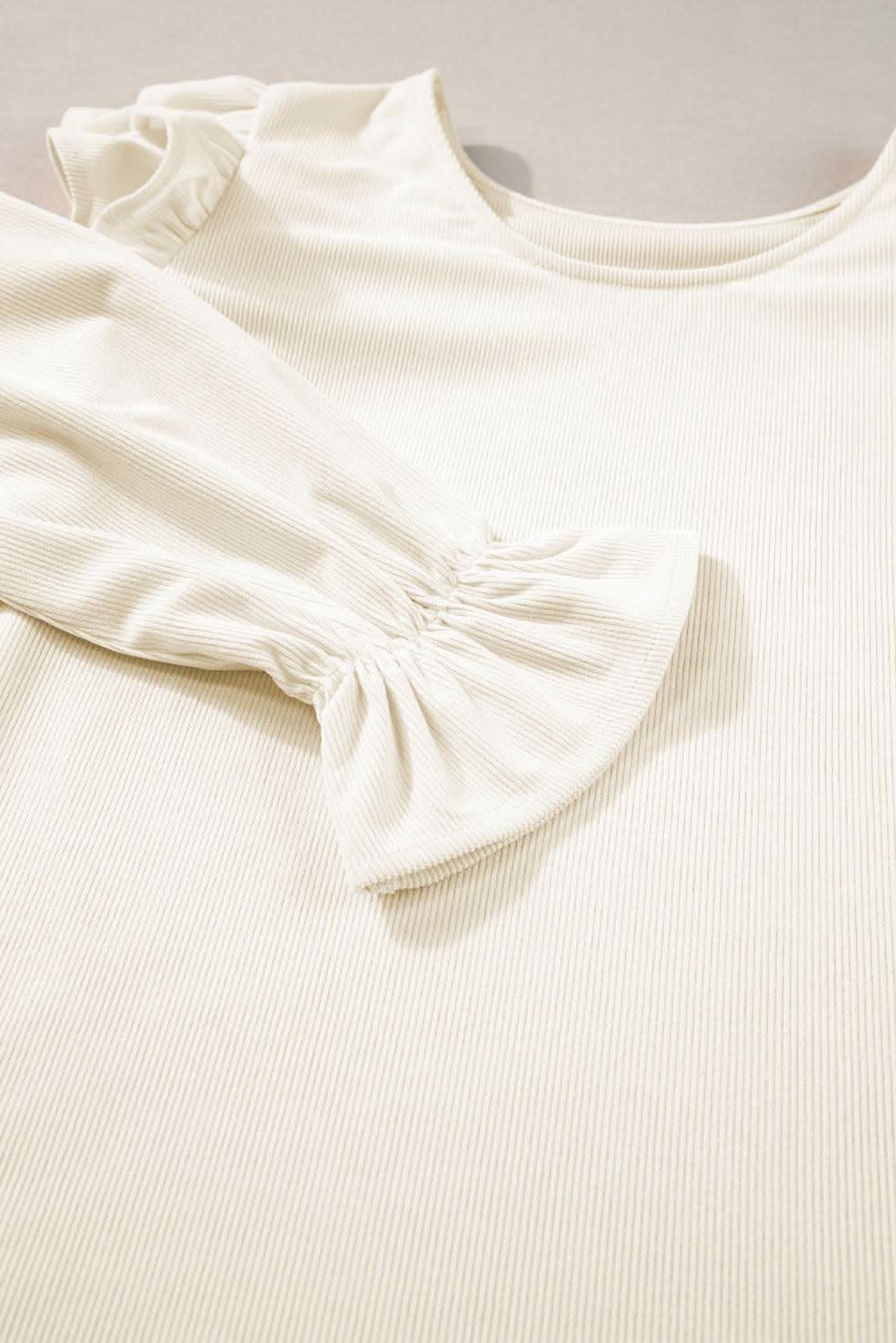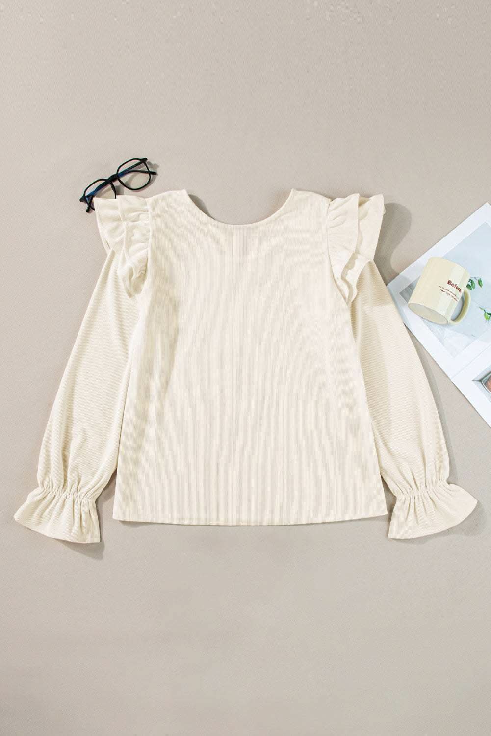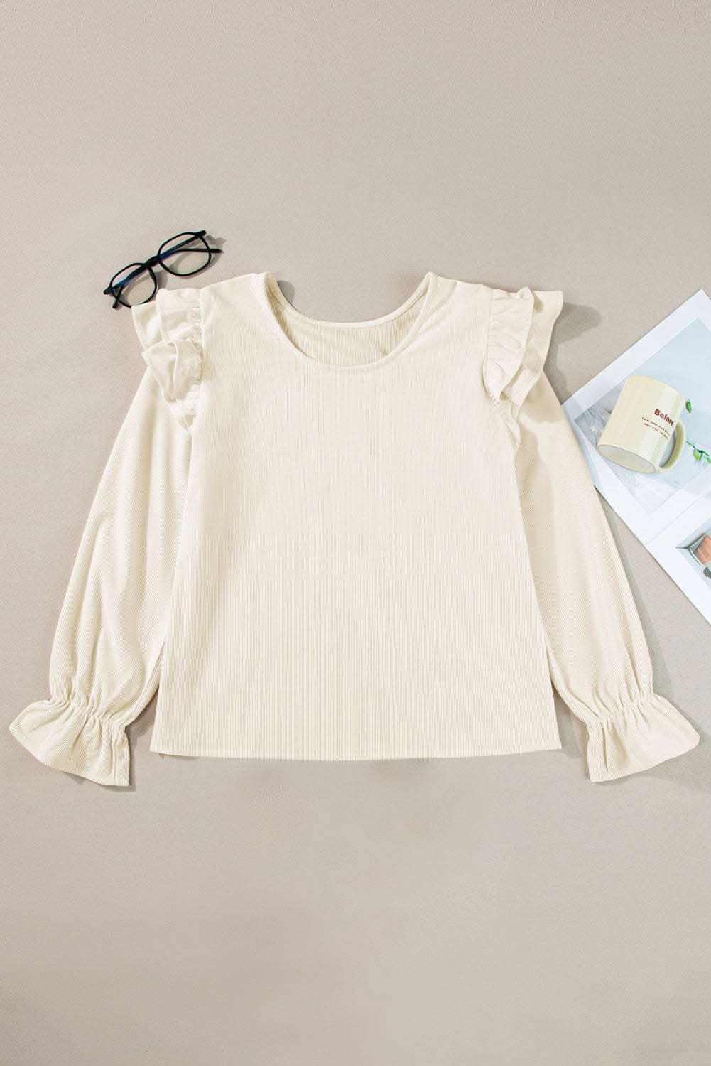 Love Salve Chic beige corduroy blouse with ruffle sleeves