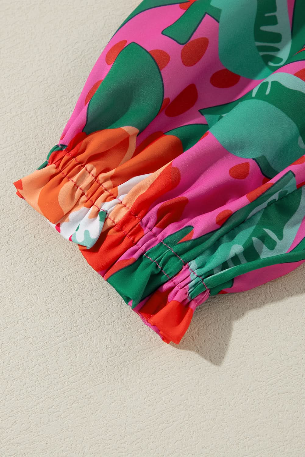 Plus size floral ruffle blouse ‐ Rose / 1X / 100%Polyester